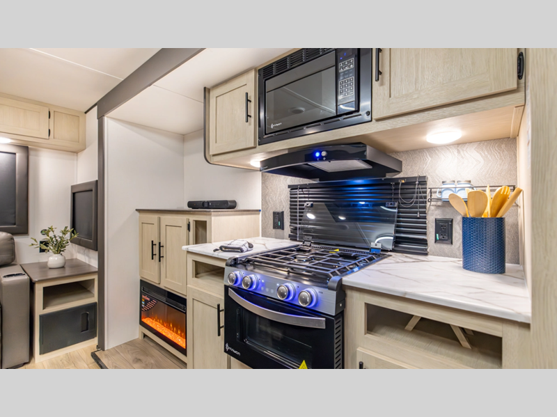 Sleeps 3 Slides 1 Length 24 ft 2 in Ext Width 8 ft Ext Height 11 ft 3 in Hitch Weight 455 lbs GVWR 6350 lbs Dry Weight 4417 lbs Cargo Capacity 1933 lbs Fresh Water Capacity 42 gals Grey Water Capacity 36 gals Black Water Capacity 36 gals Available Beds RV Queen Refrigerator Size 10 cu ft Cooktop Burners 3 Shower Size 24" x 40" Number of Awnings 1 LP Tank Capacity 20 lbs Water Heater Type Tankless AC BTU 13500 btu Axle Count 2 Number of LP Tanks 2 Shower Type Standard Solar Wattage 200 watts Similar Floorplans