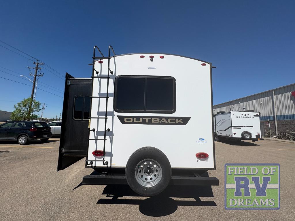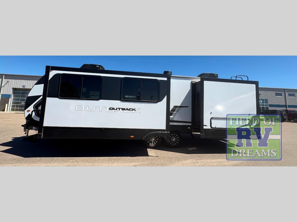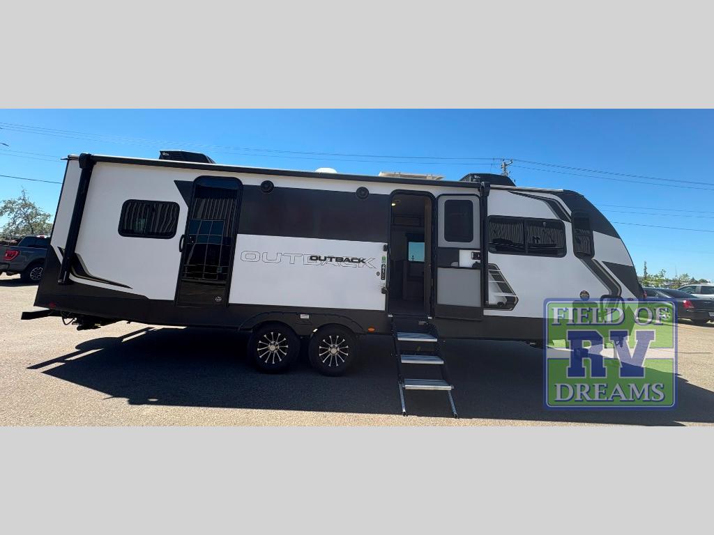 With any Outback Ultra Lite travel trailer or toy hauler by Keystone, you begin with a BAL Norco huck bolted "Z" channel frame, which is one of the most durable lightweight frames in the industry. There is also a pinch rolled laminated gel-coated fiberglass exterior, a leaf spring suspension system, large panoramic black framed tinted safety glass windows, plus a power tongue jack and LCI power stabilizing jacks for easy setup. You will appreciate the SolarFlex Protect 200 that comes standard, or you can choose the optional SolarFlex Discover 400i for even more off-grid capabilities! The interior offers pre-drilled and screwed hand-glazed modern cabinetry, extra tall slide height for maximum space, in-floor heating ducts, a Dream dinette with max-store for more storage space, and an on-demand hot water heater to mention a few highlights. Make your lightweight towing decision today, choose a comfortable and stylish Outback Ultra Lite today!