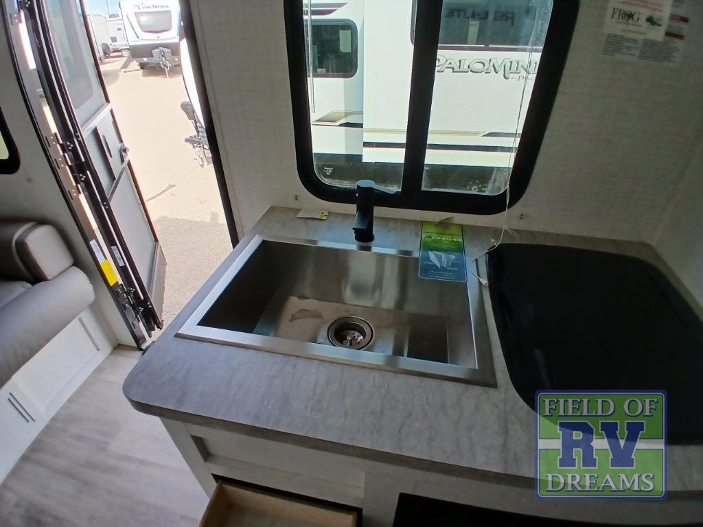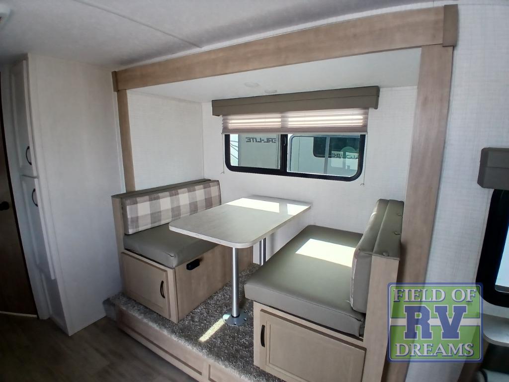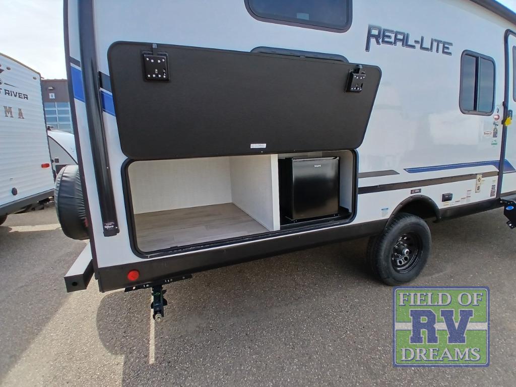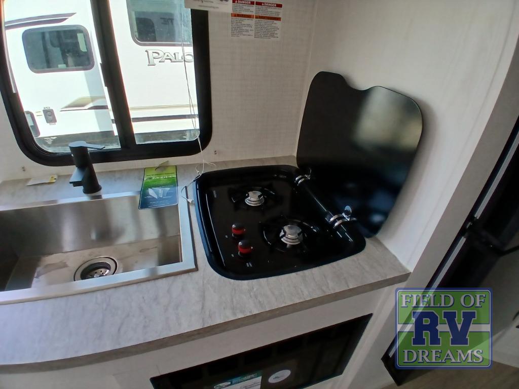 With any Real-Lite Mini single-axle travel trailer by Palomino there is Azdel construction that provides better insulation, is lighter than wood, and resistant to rot. A laminated roof, a Hi Gloss white exterior, and a front cap with a windshield and Line X protectant will allow you to enjoy your RV for years to come. Inside you will find LED lighting, an AM/FM Bluetooth stereo to listen to the big game or your favorite music, kitchen appliances to make meals, and a porcelain toilet for convenience, plus more depending on the Mini you choose. You can further customize your Real-Lite Mini by adding one or more of the many options offered, like the optional electric tongue jack, the optional frameless windows, or the optional Badlands Package!