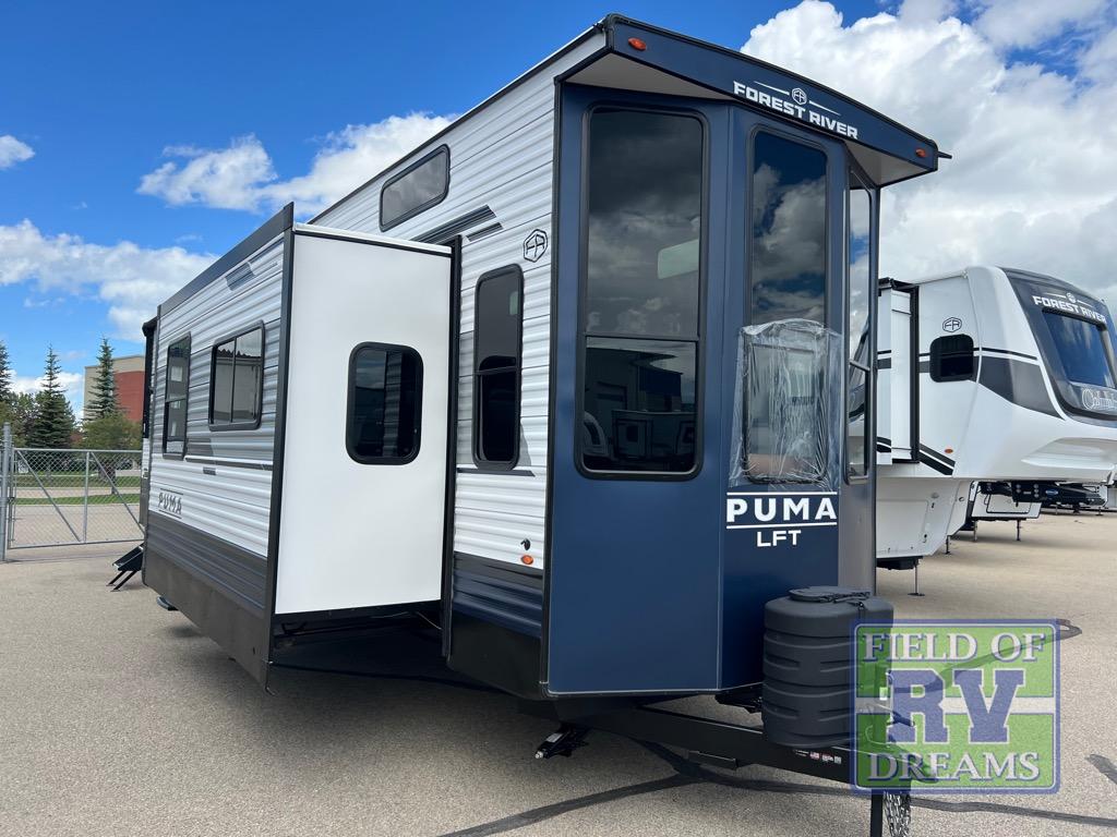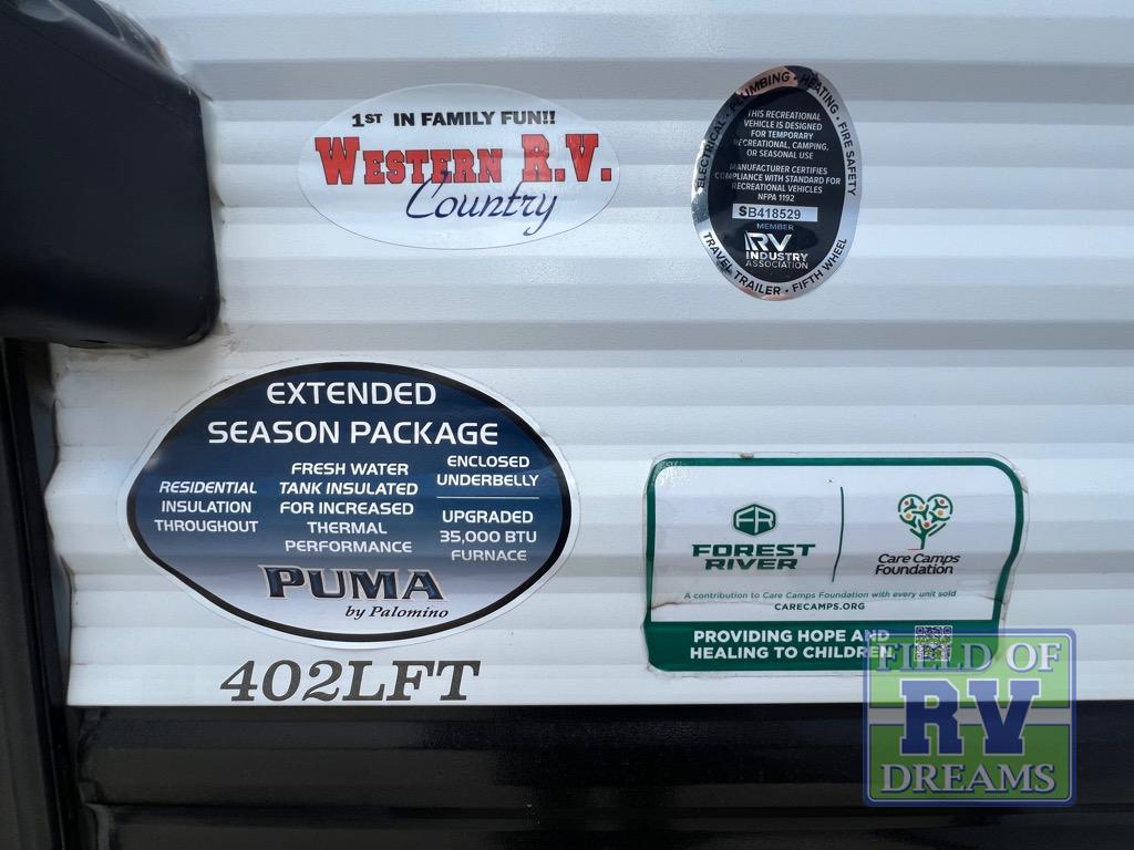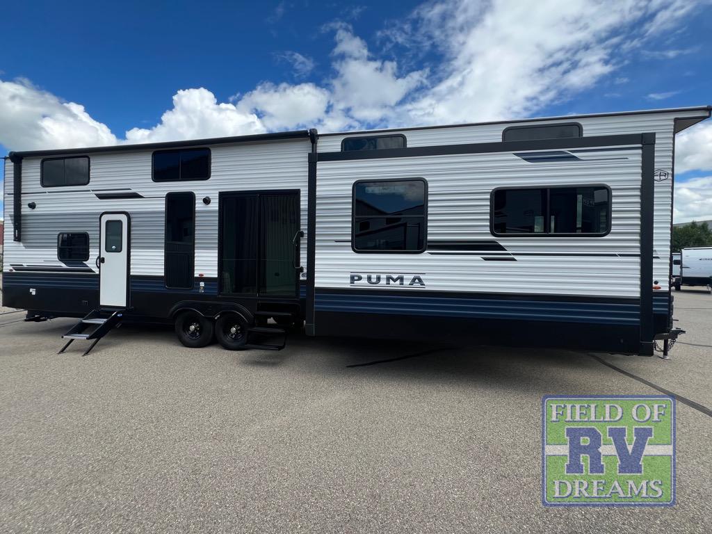 Each Puma Destination trailer by Palomino is designed to give you unforgettable getaways to the destination of your choice! The required Value Shopper Loft Package includes Congoleum designer linoleum, night roller shades, LED lighting, and a 24" stainless steel oven with a four burner stove so you can make meals just like you would at home. The tankless water heater is another feature you won't want to camp without, and there is WiFi prep, solar prep, plus optional washer and dryer prep for the option to further customize your trailer. An outside shower is included with the required Loft Package, along with two exterior speakers, solid surface countertops, four stabilizer jacks, and more!