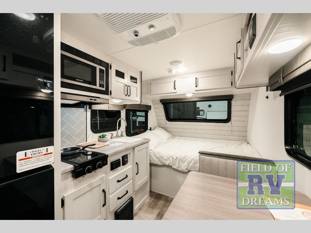 Easily hit the road with this trailer in tow! You can camp locally or far away, the choice is yours. There is an RV queen bed up front to sleep on and the dinette offers sleeping space for one more, the galley kitchen provides a two-burner cooktop and a 12V refrigerator to make meals, plus the bathroom offers a tub and toilet so you can skip the public facilities. And the entry closet can be used for your daily clothes, coats or even extra space for dry goods and such.