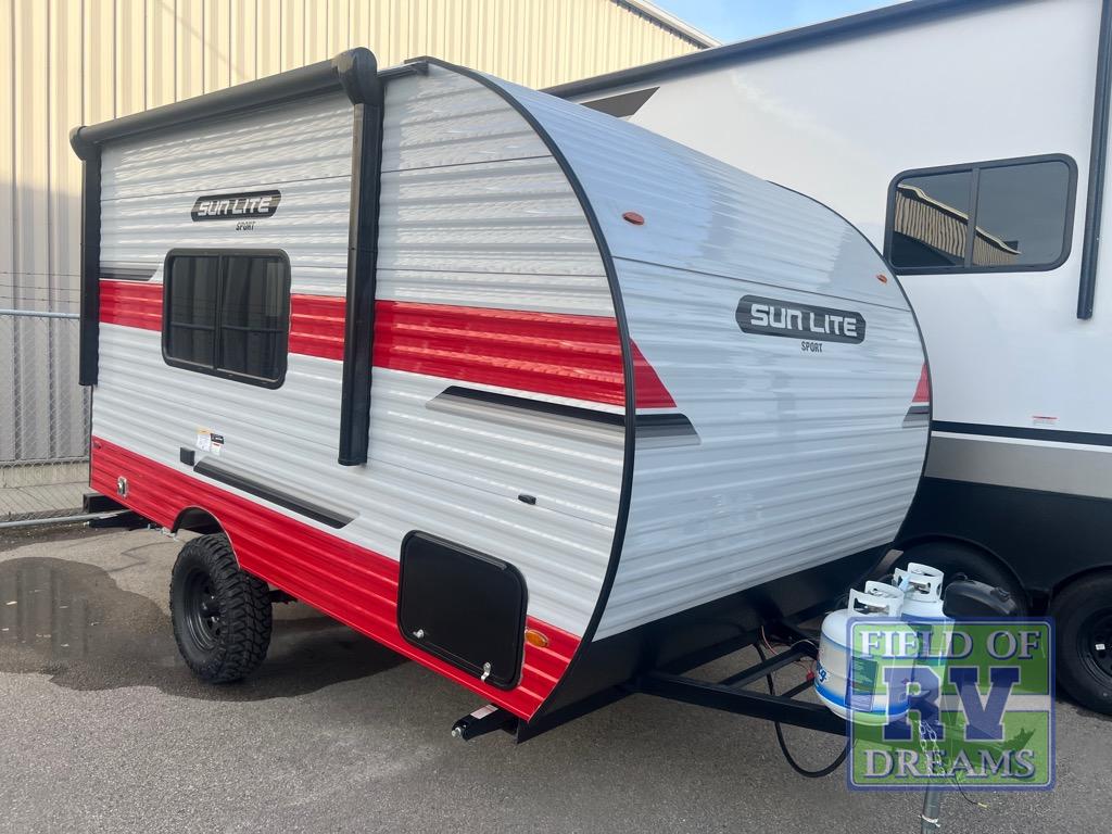 You can trust the build and enjoy your experience with any one of these Sunset Park RV Sun Lite travel trailers! Their aerodynamic profile is not only easy to haul, but also saves on fuel. They are built to withstand years of traveling even though they are lightweight with a diamond plate rock guard, a one piece PVC roof membrane, Dexter Spring-Leaf axles, and tinted safety glass windows. Some comfort standards you are sure to enjoy are the two-burner stove top range with hood, light and fan, plus the refrigerator and microwave, and an outside shower to help keep the dirt outdoors where it belongs.