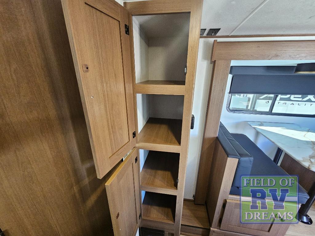 You will find comfort, convenience, and a sturdy construction with each of these Coachmen RV Apex Nano travel trailers! They are held together with an aluma-cage construction, an I-beam chassis, plus vacuum-bonded laminated dual Azdel fiberglass walls for double the protection against the elements. The 400-watt solar panel with a 30 amp control charger is included, along with two 20 lb. LP tanks, a high velocity power roof vent, plus 12V outlets to keep you powered up. More exterior features include a hot/cold shower, four stabilizer jacks, a power awning with LED lighting, and radius thumb latch baggage doors to easily pack and unload your gear. You will love the interior of your Apex Nano with Congoleum residential flooring, one-piece seamless edge countertops, matte black hardware in the galley, and a hand-crafted wood medicine cabinet in the bath.