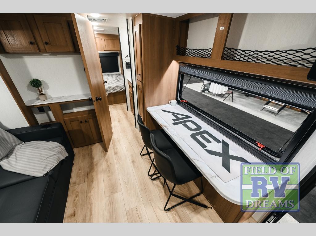 You will find comfort, convenience, and a sturdy construction with each of these Coachmen RV Apex Nano travel trailers! They are held together with an aluma-cage construction, an I-beam chassis, plus vacuum-bonded laminated dual Azdel fiberglass walls for double the protection against the elements. The 400-watt solar panel with a 30 amp control charger is included, along with two 20 lb. LP tanks, a high velocity power roof vent, plus 12V outlets to keep you powered up. More exterior features include a hot/cold shower, four stabilizer jacks, a power awning with LED lighting, and radius thumb latch baggage doors to easily pack and unload your gear. You will love the interior of your Apex Nano with Congoleum residential flooring, one-piece seamless edge countertops, matte black hardware in the galley, and a hand-crafted wood medicine cabinet in the bath.
