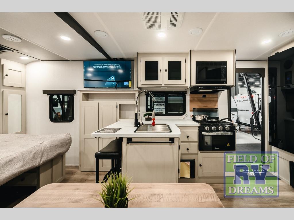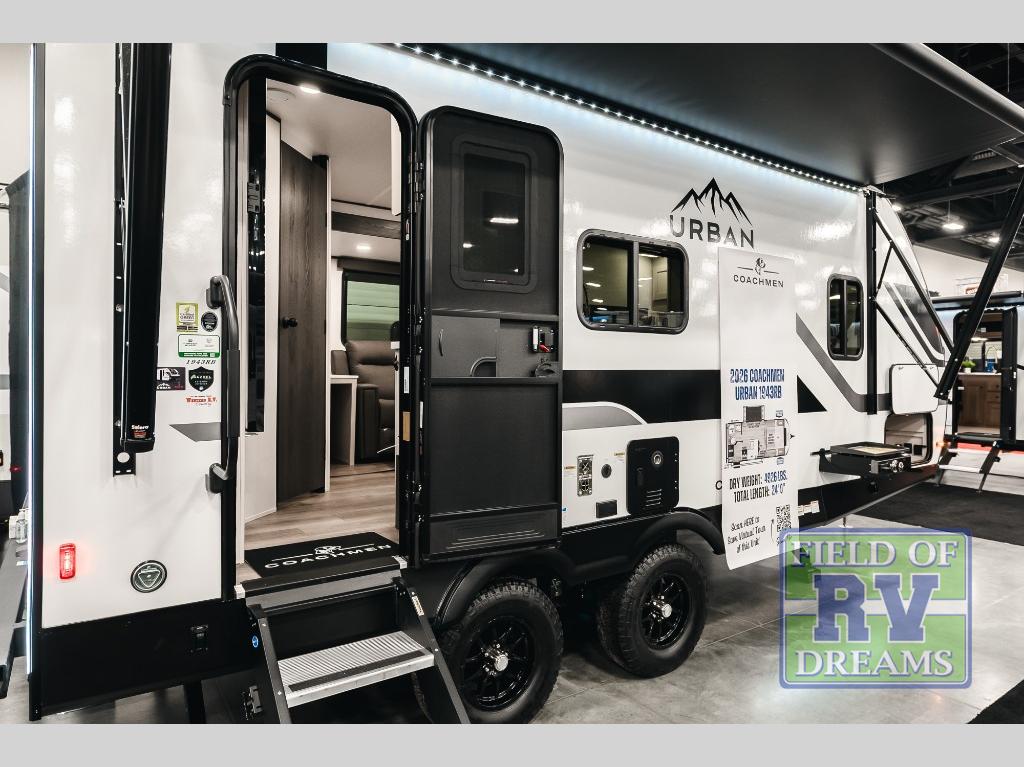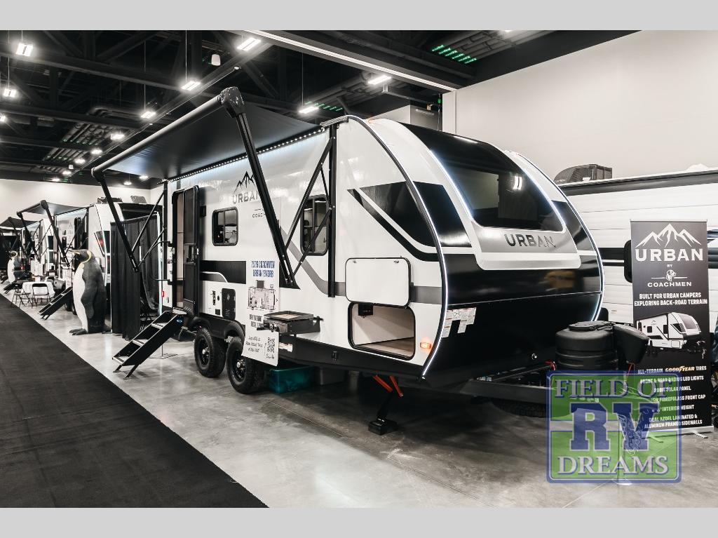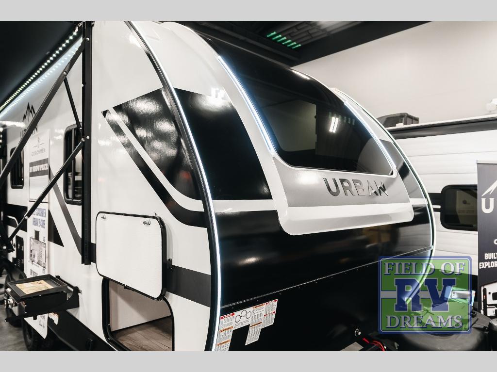With any Urban travel trailer by Coachmen, the "Twice Cool" dual ducted air conditioning system, motion activated floor lights, and the motion activated pass-through storage light plus fishing pole storage, will make your camping experience simplified. The heated and enclosed underbelly provides protection on the road, the 200W solar panel with 30 amp controller provides off-grid camping, and the power tongue jack makes setup easier. Each is built with a front cap with LED strip lights, a laminated, aluminum framed floor, rear wall, and sidewalls, plus a fully walkable roof with seamless Tufflex PVC covering. Make your decision today, and camp with everything in its place!