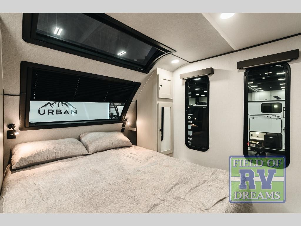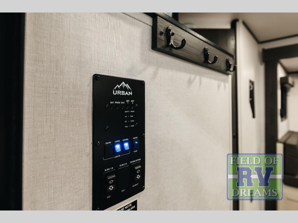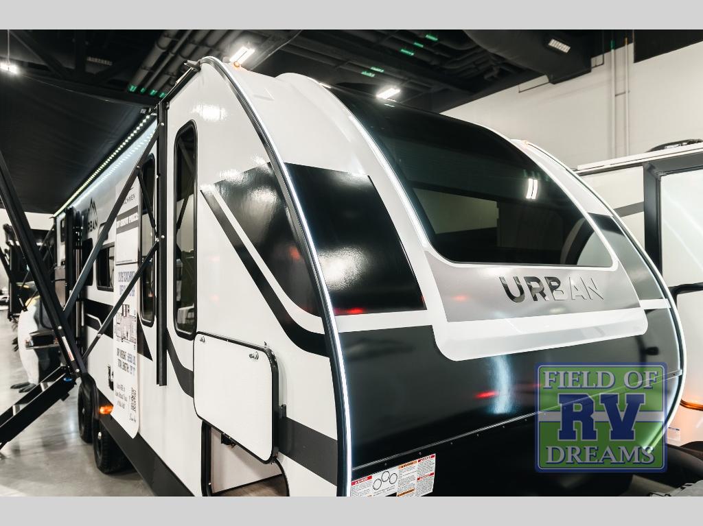 With any Urban travel trailer by Coachmen, the "Twice Cool" dual ducted air conditioning system, motion activated floor lights, and the motion activated pass-through storage light plus fishing pole storage, will make your camping experience simplified. The heated and enclosed underbelly provides protection on the road, the 200W solar panel with 30 amp controller provides off-grid camping, and the power tongue jack makes setup easier. Each is built with a front cap with LED strip lights, a laminated, aluminum framed floor, rear wall, and sidewalls, plus a fully walkable roof with seamless Tufflex PVC covering. Make your decision today, and camp with everything in its place!