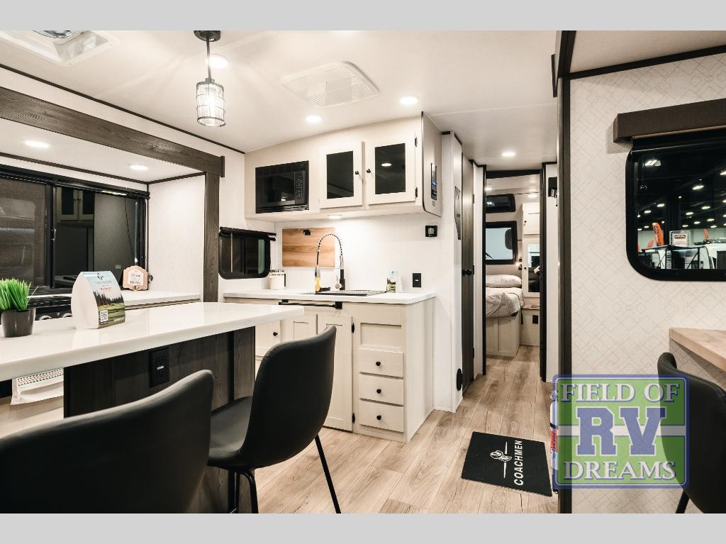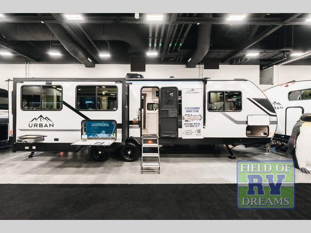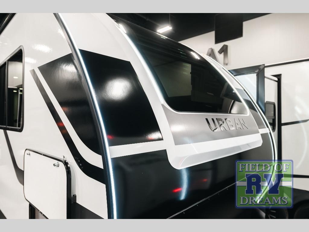 With any Urban travel trailer by Coachmen, the "Twice Cool" dual ducted air conditioning system, motion activated floor lights, and the motion activated pass-through storage light plus fishing pole storage, will make your camping experience simplified. The heated and enclosed underbelly provides protection on the road, the 200W solar panel with 30 amp controller provides off-grid camping, and the power tongue jack makes setup easier. Each is built with a front cap with LED strip lights, a laminated, aluminum framed floor, rear wall, and sidewalls, plus a fully walkable roof with seamless Tufflex PVC covering. Make your decision today, and camp with everything in its place!