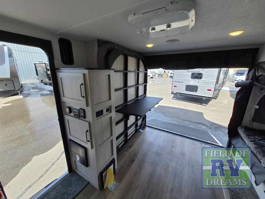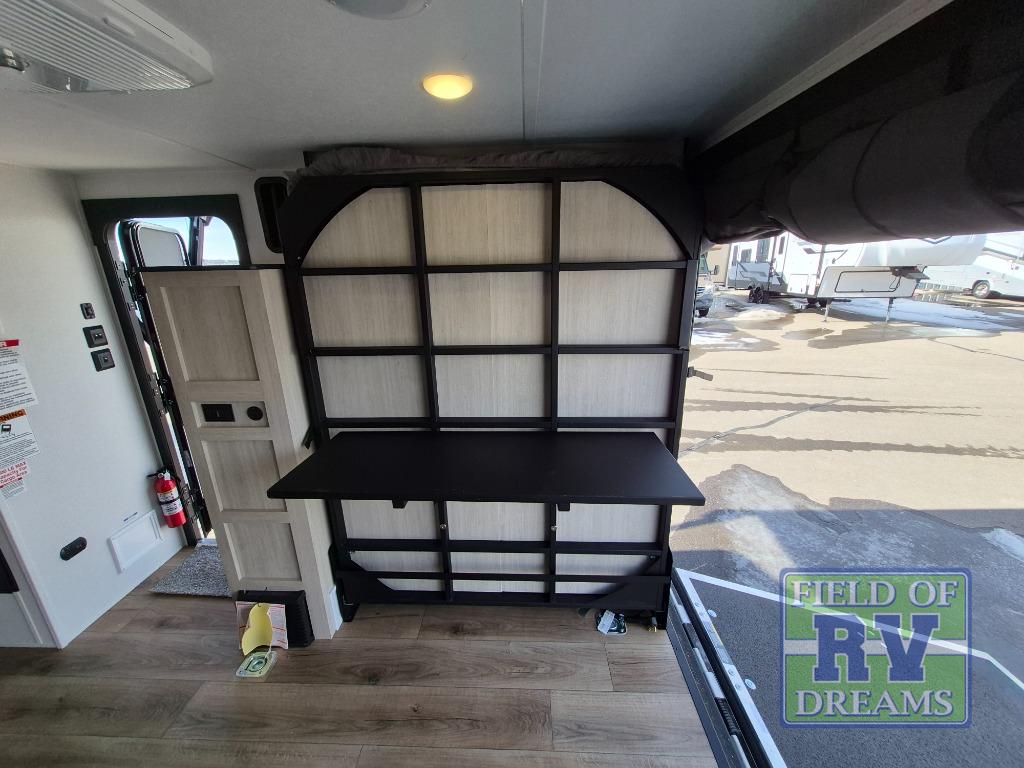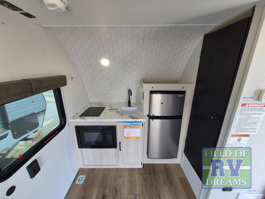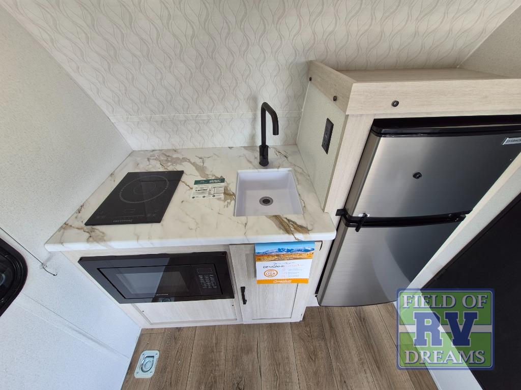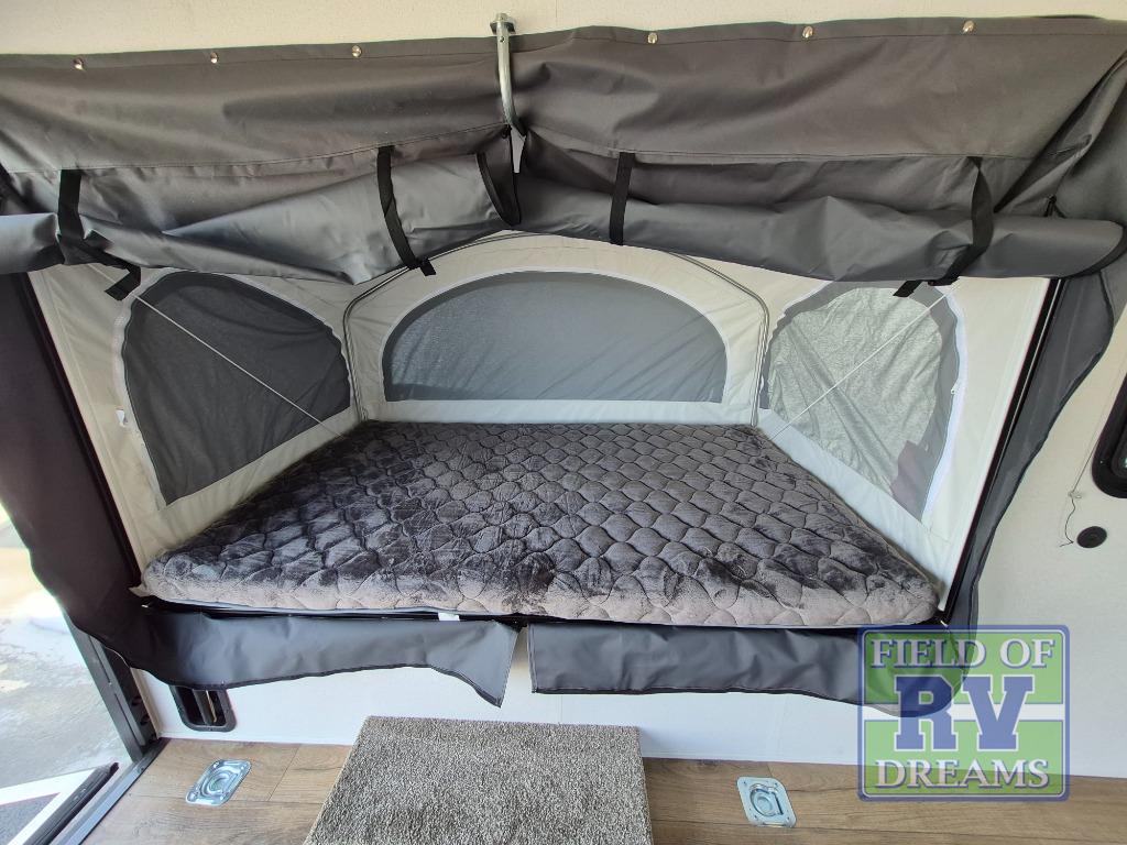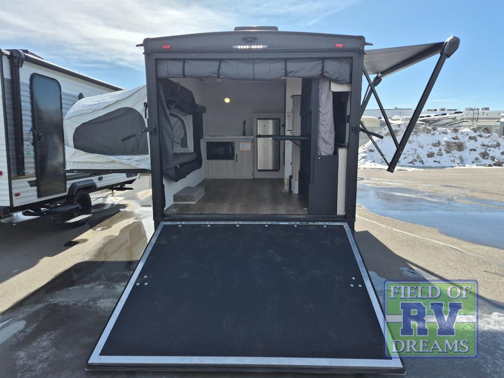 The outdoor enthusiast has met their match with this lightweight toy hauler. Once you've unloaded your bikes or kayaks using the ramp door, you can take a rest on the 54" x 74" Murphy bed, make lunch in the front corner kitchen, or freshen up in the 23" x 38" shower combo! And an optional fold-out tent bed is available if you're needing additional sleeping space!