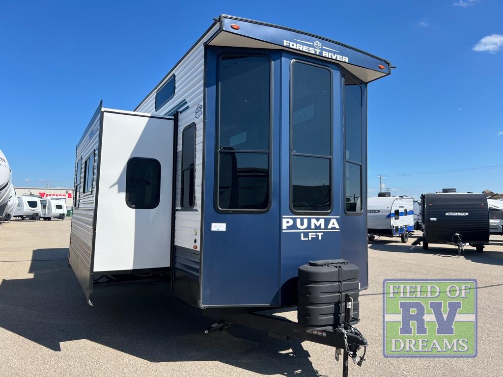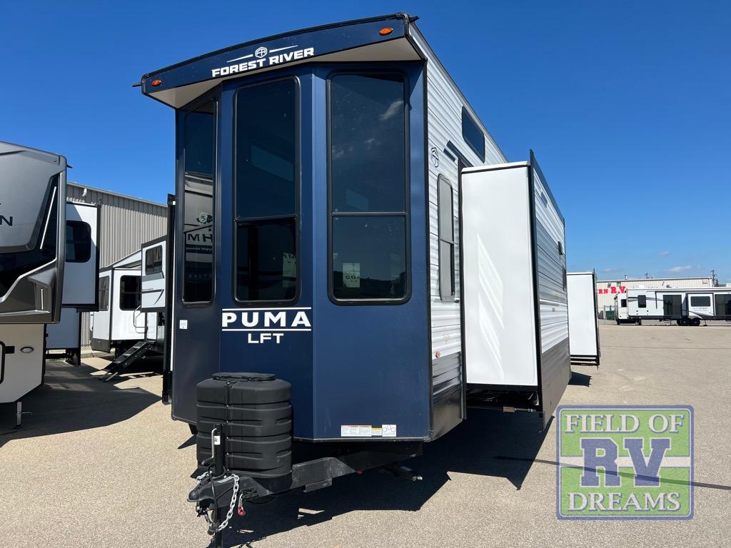 Each Puma Destination trailer by Palomino is designed to give you unforgettable getaways to the destination of your choice! The required Value Shopper Loft Package includes Congoleum designer linoleum, night roller shades, LED lighting, and a 24" stainless steel oven with a four burner stove so you can make meals just like you would at home. The tankless water heater is another feature you won't want to camp without, and there is WiFi prep, solar prep, plus optional washer and dryer prep for the option to further customize your trailer. An outside shower is included with the required Loft Package, along with two exterior speakers, solid surface countertops, four stabilizer jacks, and more!
