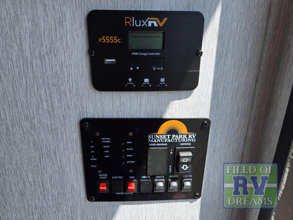 You can trust the build and enjoy your experience with any one of these Sunset Park RV Sun Lite travel trailers or toy haulers! Their aerodynamic profile is not only easy to haul, but also saves on fuel. They are built to withstand years of traveling even though they are lightweight with a diamond plate rock guard, a one piece PVC roof membrane, Dexter Spring-Leaf axles, and tinted safety glass windows. Some comfort standards you are sure to enjoy are the two-burner stove top range with hood, light and fan, plus the refrigerator and microwave, and an outside shower to help keep the dirt outdoors where it belongs.