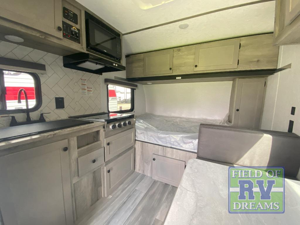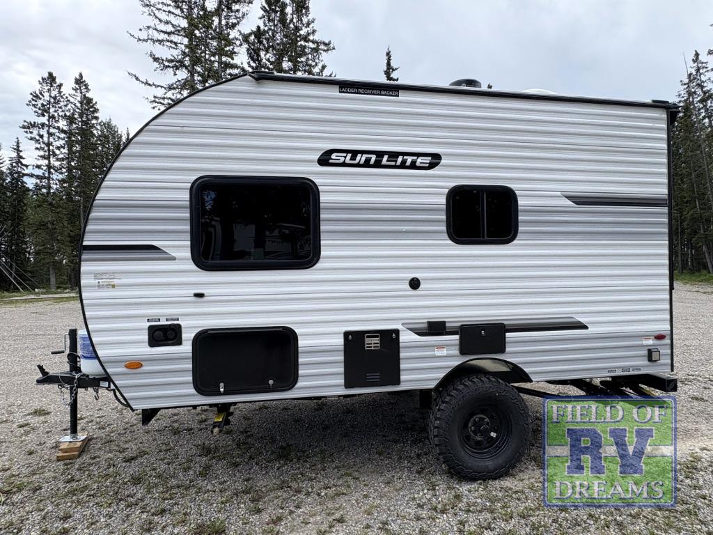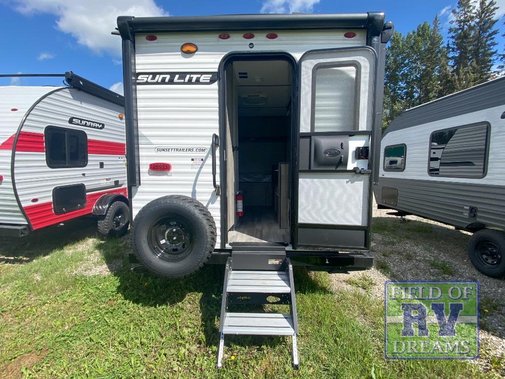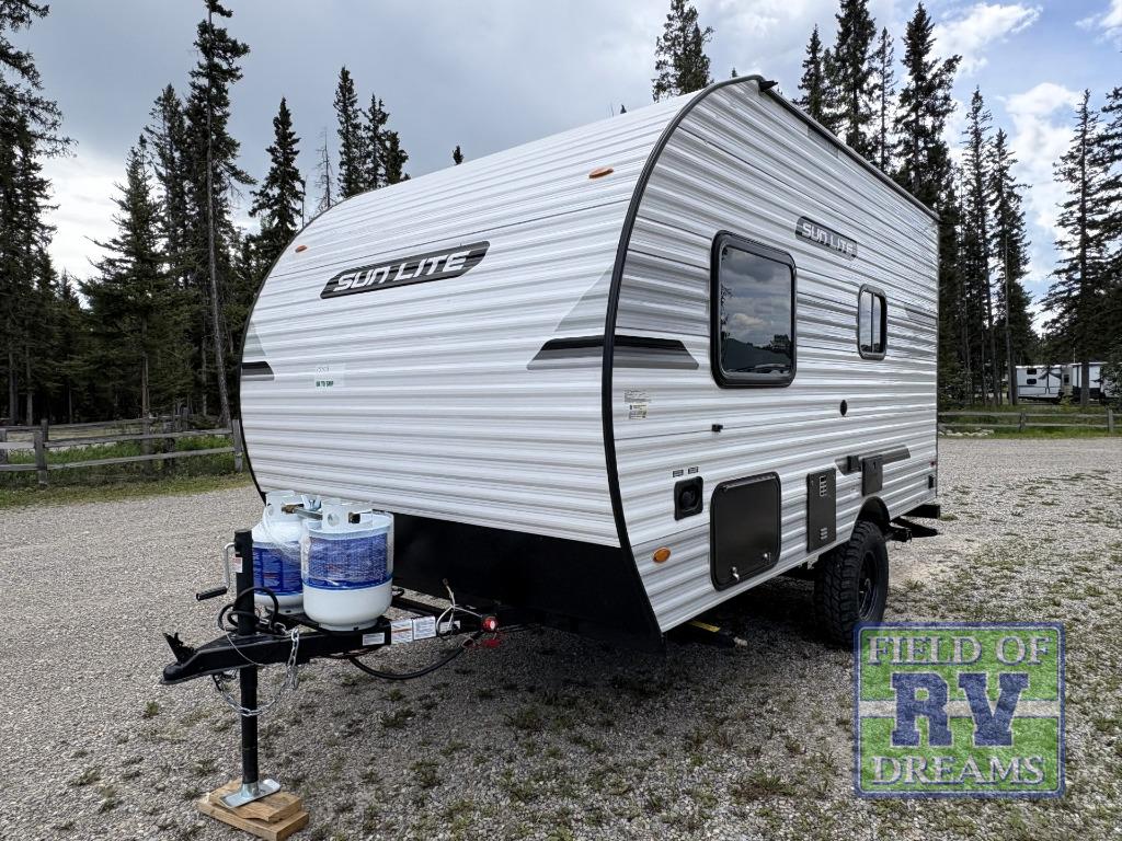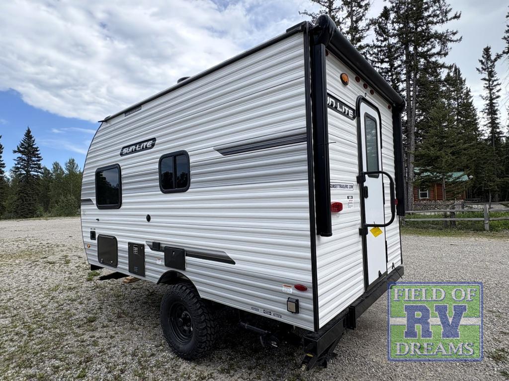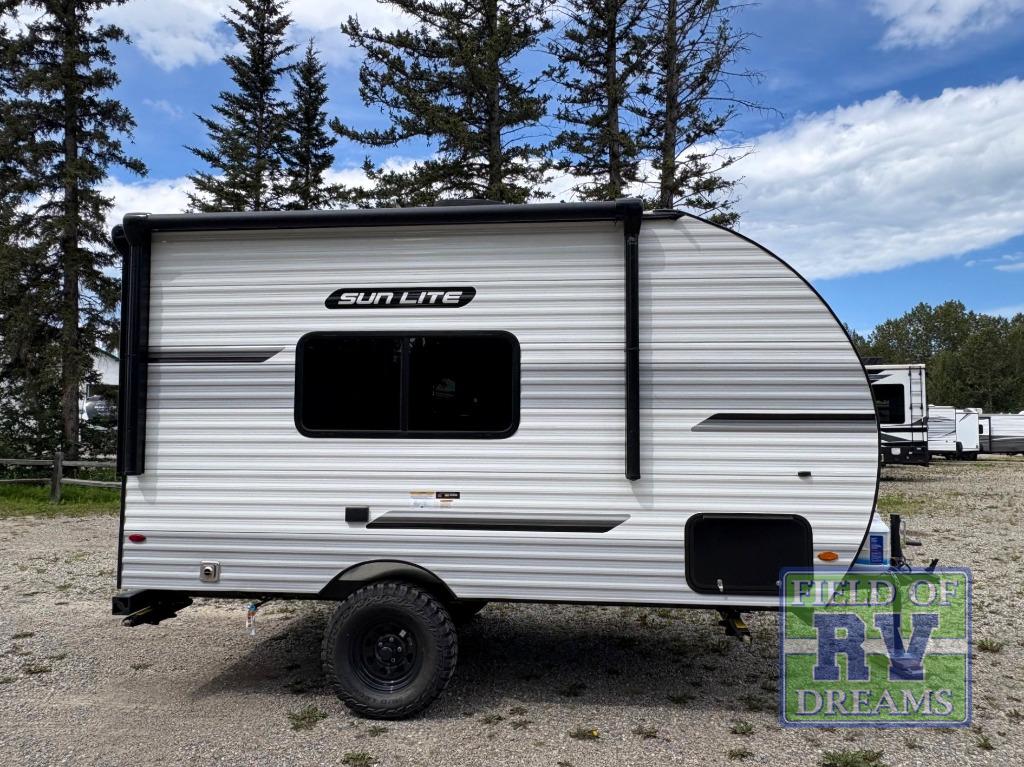 You can trust the build and enjoy your experience with any one of these Sunset Park RV Sun Lite travel trailers! Their aerodynamic profile is not only easy to haul, but also saves on fuel. They are built to withstand years of traveling even though they are lightweight with a diamond plate rock guard, a one piece PVC roof membrane, Dexter Spring-Leaf axles, and tinted safety glass windows. Some comfort standards you are sure to enjoy are the two-burner stove top range with hood, light and fan, plus the refrigerator and microwave, and an outside shower to help keep the dirt outdoors where it belongs.