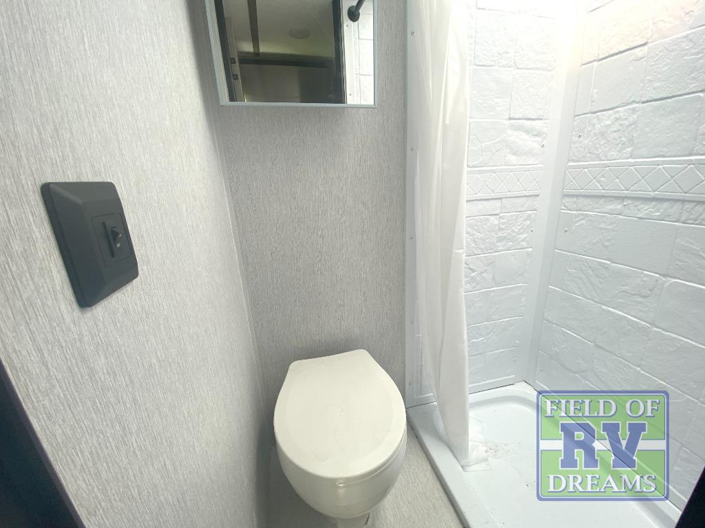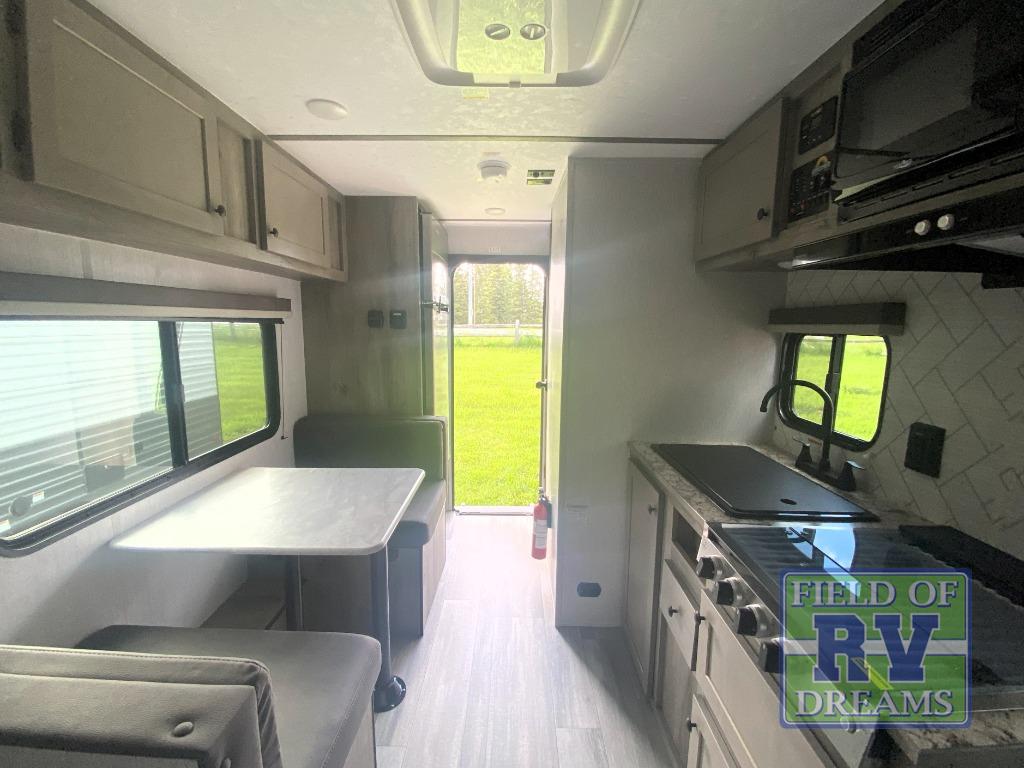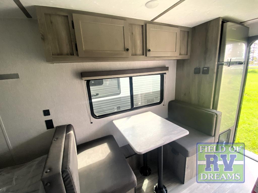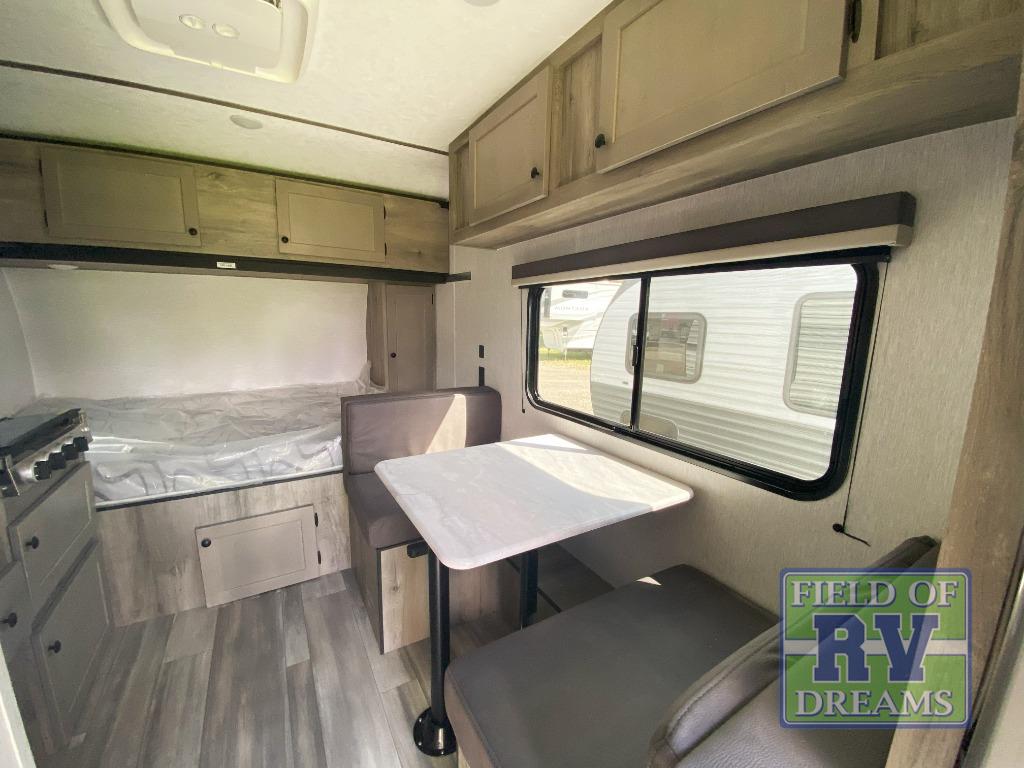 This travel trailer is perfect for couples who want to getaway together! The front bed offers a comfortable place to lay your head at night. When you're not using the booth dinette to enjoy a meal that you prepared with the two burner cooktop or playing a card game, you can transform it into an extra sleeping space. You can start your mornings feeling clean and fresh after showering in the tub with unwanted steam removed with the power roof vent.