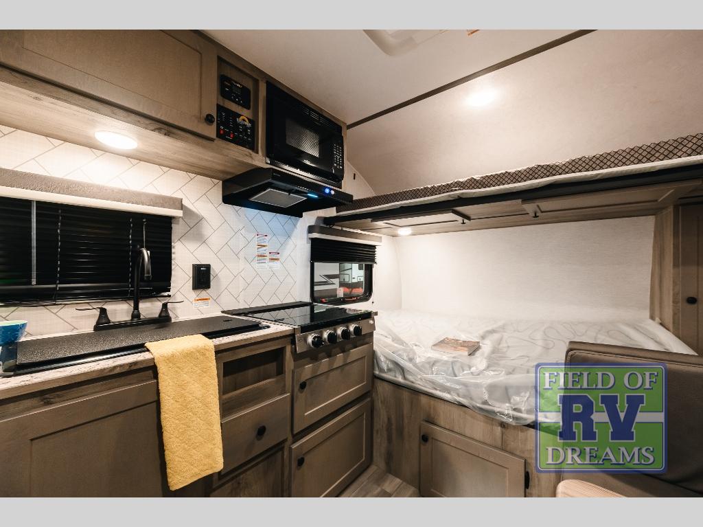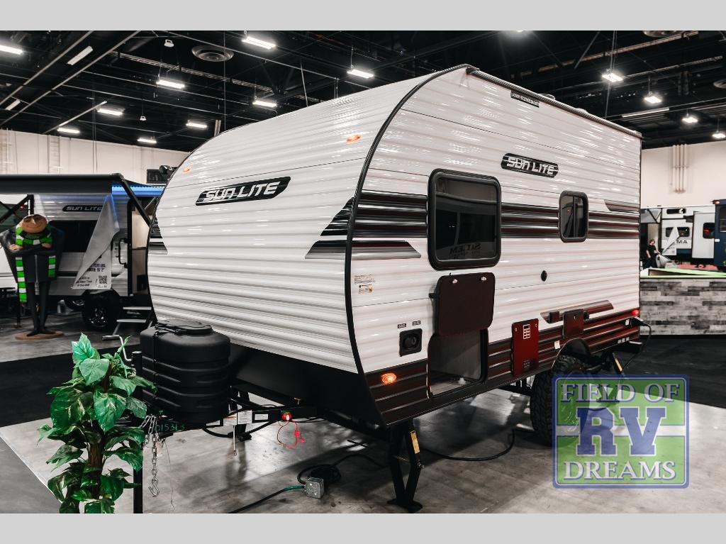 You can trust the build and enjoy your experience with any one of these Sunset Park RV Sun Lite travel trailers! Their aerodynamic profile is not only easy to haul, but also saves on fuel. They are built to withstand years of traveling even though they are lightweight with a diamond plate rock guard, a one piece PVC roof membrane, Dexter Spring-Leaf axles, and tinted safety glass windows. Some comfort standards you are sure to enjoy are the two-burner stove top range with hood, light and fan, plus the refrigerator and microwave, and an outside shower to help keep the dirt outdoors where it belongs.