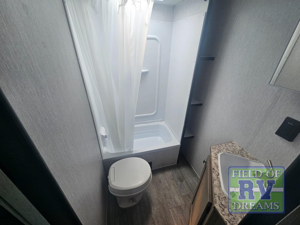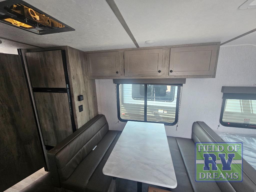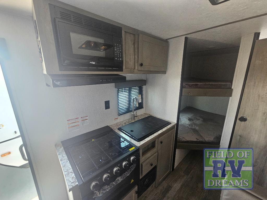 The perfect family-friendly travel trailer is found with this Sun Lite LTD model. You can take the front bed each night, while your guests or little ones take the double-size bunks towards the back. And if you're not needing the additional sleeping space, you can choose the desk option in place of the bunks. There is also a full bath right next to the bunks for easy nighttime use. The chef of your group can make meals using the three burner cooktop, and there is a double bowl sink for easy clean up. Once dinner has been cleaned up, you can play a game at the booth dinette, or head outdoors for an evening walk around the campground!