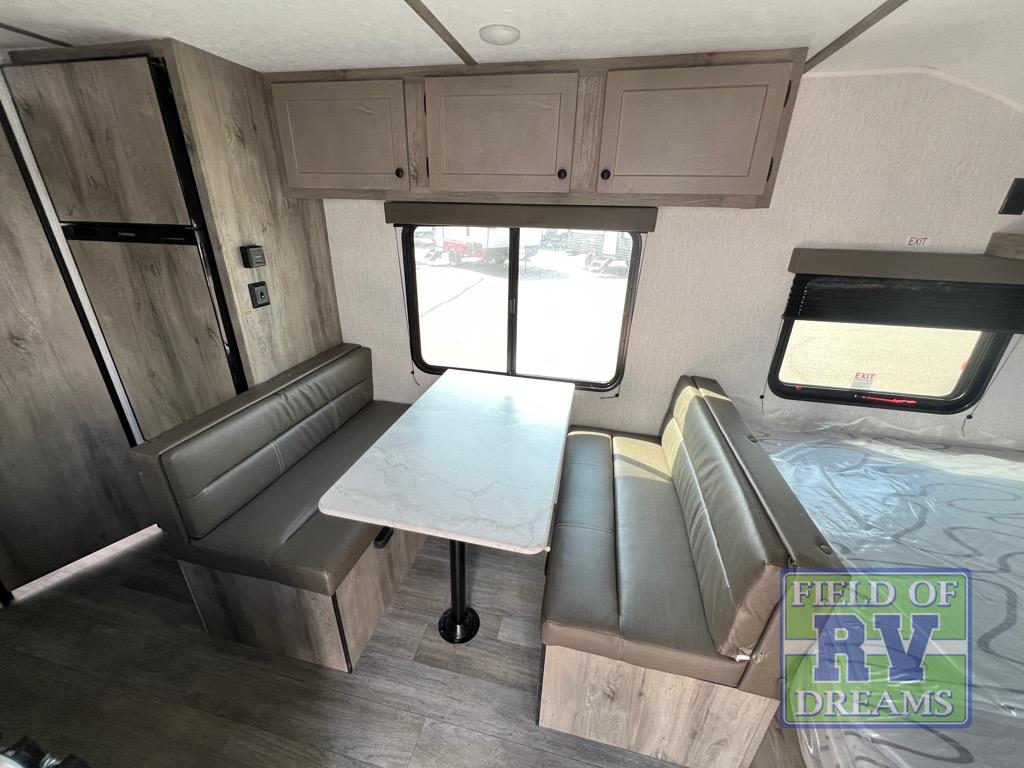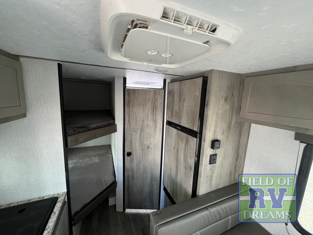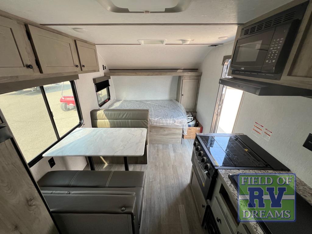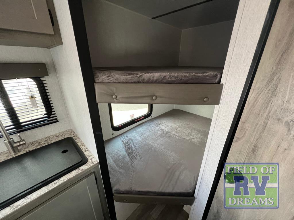 The perfect family-friendly travel trailer is found with this Sun Lite LTD model. You can take the front bed each night, while your guests or little ones take the double-size bunks towards the back. And if you're not needing the additional sleeping space, you can choose the desk option in place of the bunks. There is also a full bath right next to the bunks for easy nighttime use. The chef of your group can make meals using the three burner cooktop, and there is a double bowl sink for easy clean up. Once dinner has been cleaned up, you can play a game at the booth dinette, or head outdoors for an evening walk around the campground!
