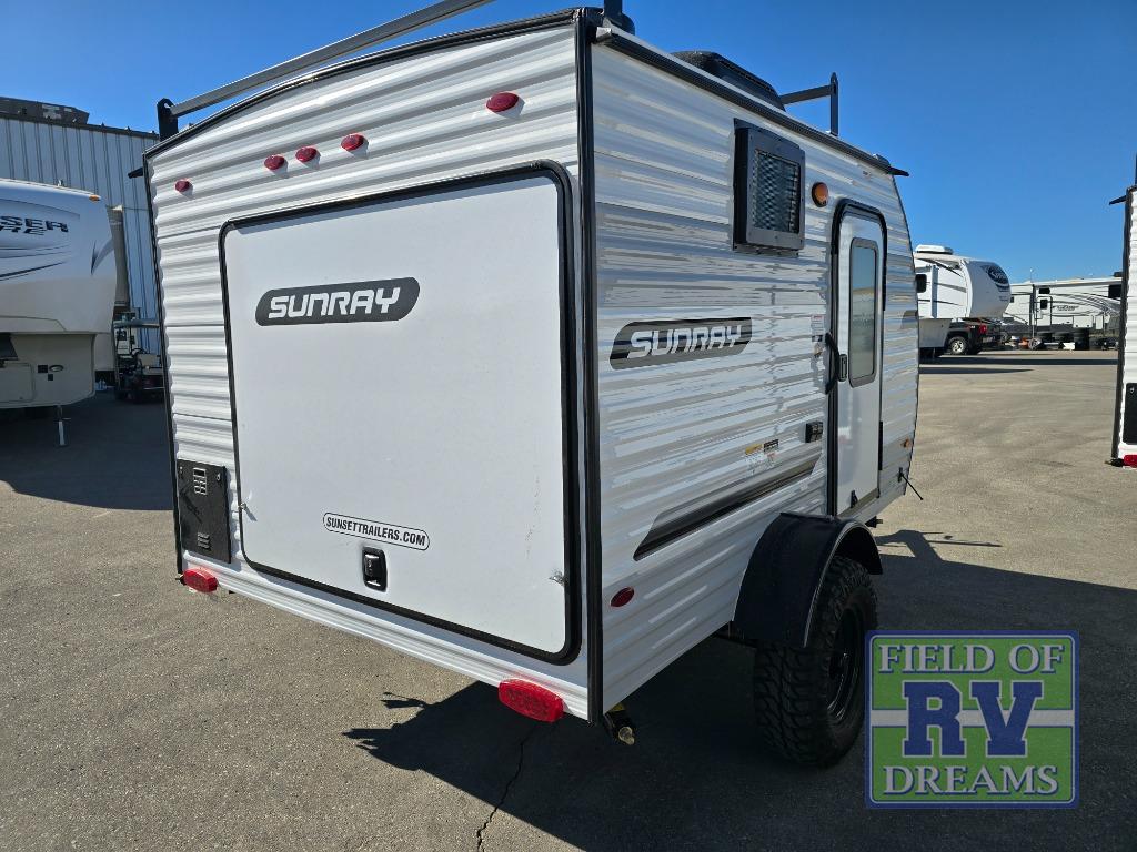 The Sunray travel trailer from Sunset Park RV is an investment that you'll be able to enjoy for many years to come! These compact trailers are effortless to tow, so you won't need fancy equipment to have fun at the campsite. The Sunray is built upon a powder-coated steel chassis, and it has a one-piece PVC roof membrane to keep the RV protected. You'll find radial tires, a spare tire with carrier where available, and .024" aluminum siding on each model. You'll be able to remain comfortable when staying indoors thanks to the A/C and furnace. Another way that your camping experience will be elevated is with the Confidence Package which comes with a 100 W solar kit w/ controller installed, a roof rack, and more!