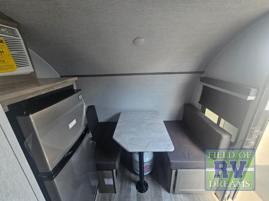 This Sunray travel trailer is the largest and most accommodating because it comes with a wet bath so that you can even take a shower in your trailer! There is a small kitchen on the interior that comes with a two-burner stove top, a refrigerator, and a microwave so that you can cook dinner without having to start a fire, and since it is indoors, you will be able to keep the bugs away while you prepare something delicious to eat. If you need to rinse off some gear, the outside shower will be especially useful, and if you need to charge your devices, use the USB ports. You will also find a Winegard HDTV antenna on this model. Add the available Classic option for 14" tires instead of the off-road version, color matching rims with Moon Caps, and Retro decor and Diner-Style countertops.