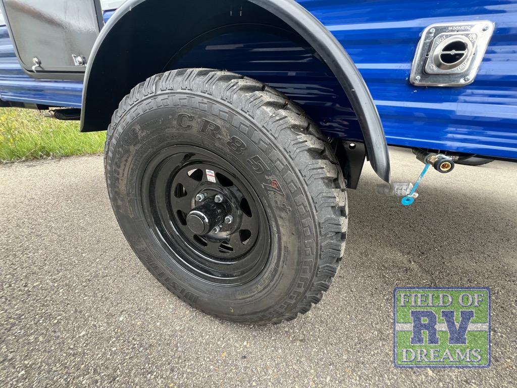 This Sunray travel trailer is the largest and most accommodating because it comes with a wet bath so that you can even take a shower in your trailer! There is a small kitchen on the interior that comes with a two-burner stove top, a refrigerator, and a microwave so that you can cook dinner without having to start a fire, and since it is indoors, you will be able to keep the bugs away while you prepare something delicious to eat. If you need to rinse off some gear, the outside shower will be especially useful, and if you need to charge your devices, use the USB ports. You will also find a Winegard HDTV antenna on this model. Add the available Classic option for 14" tires instead of the off-road version, color matching rims with Moon Caps, and Retro decor and Diner-Style countertops.
