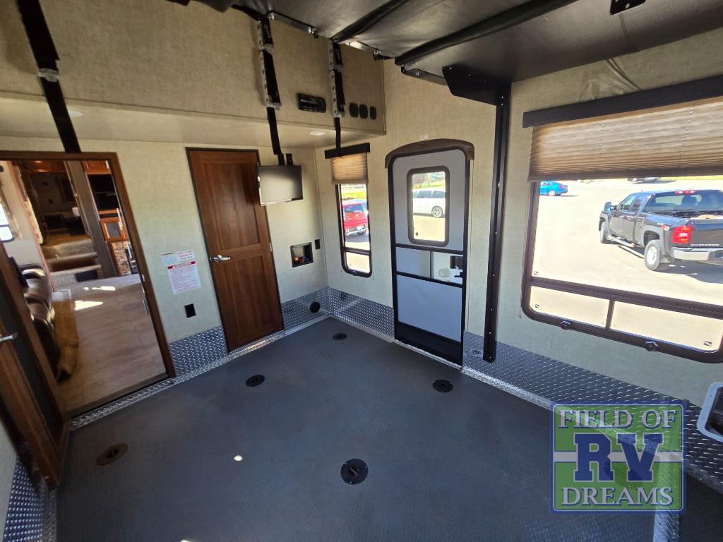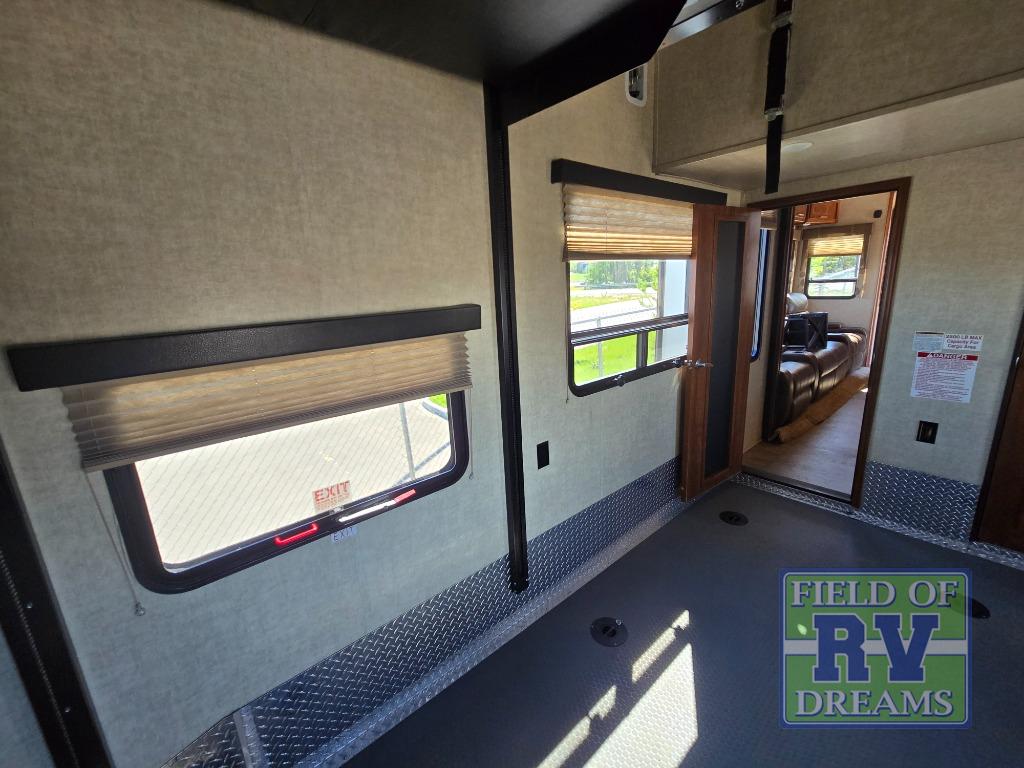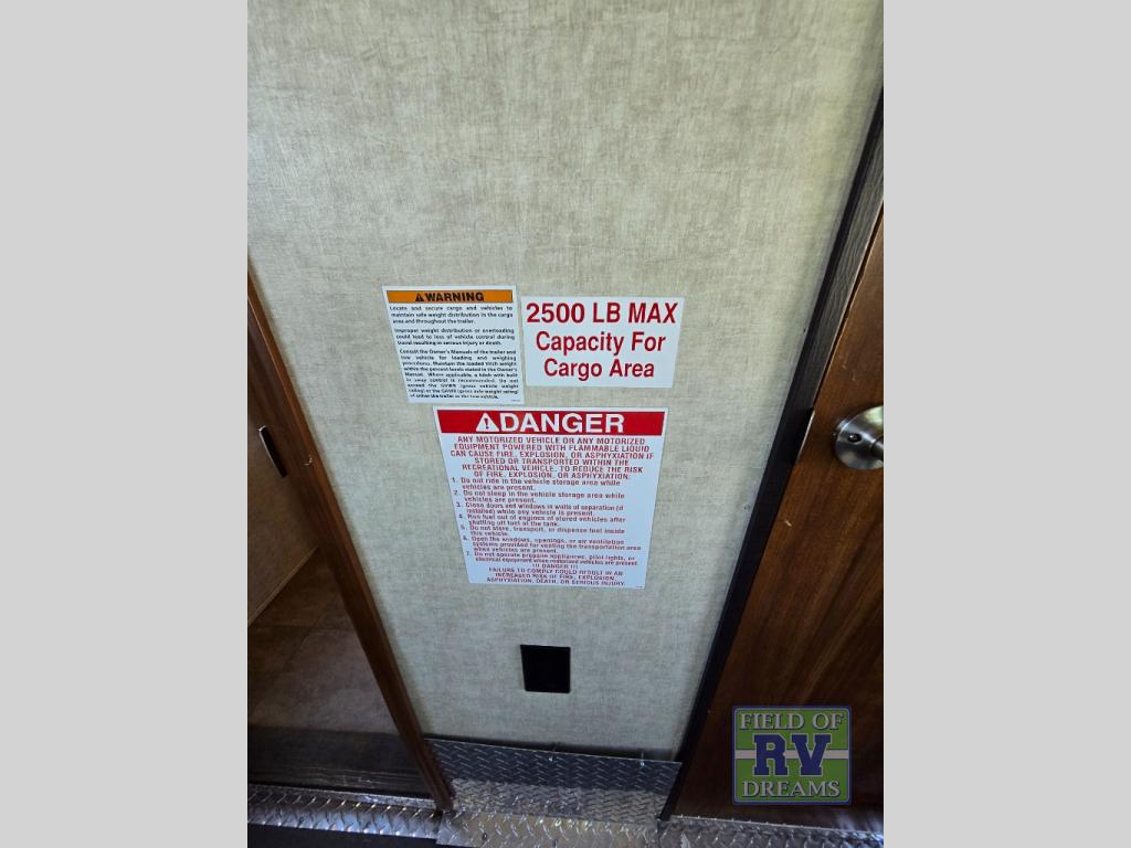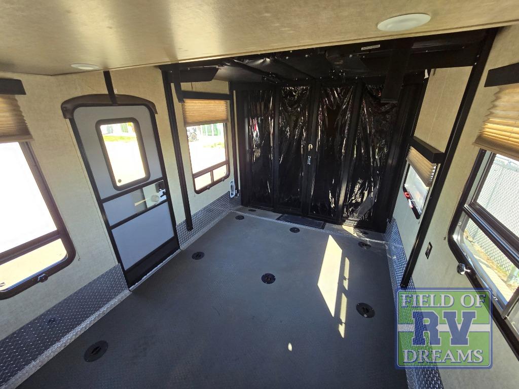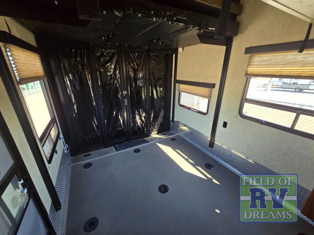 Starting with the 12' garage space you will find loading and unloading easy with the 8' rear ramp door. There are optional dual opposing sofas that can be added with a top queen bed that can be lowered once the toys are removed to provide extra seating during the day and extra sleeping space at night. There is also a 40" loft above the cargo area that overlooks the interior of the unit that the kids are going to love! There is also a convenient half bath.