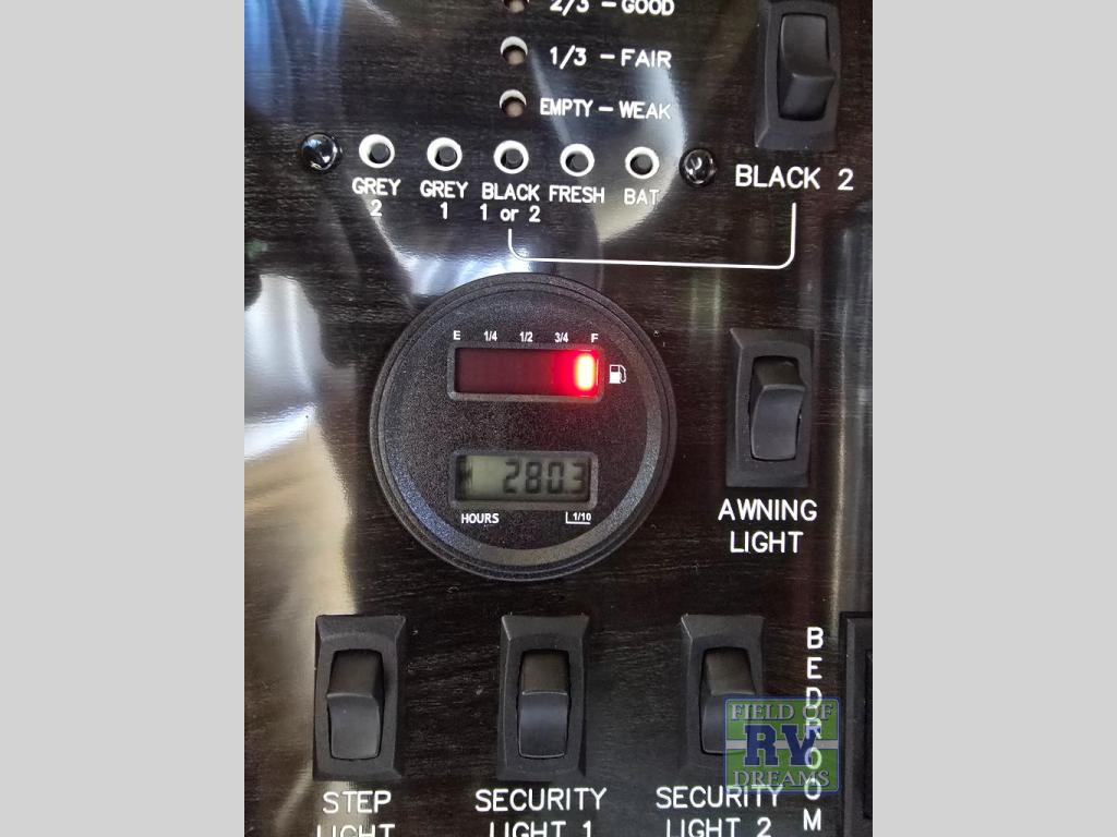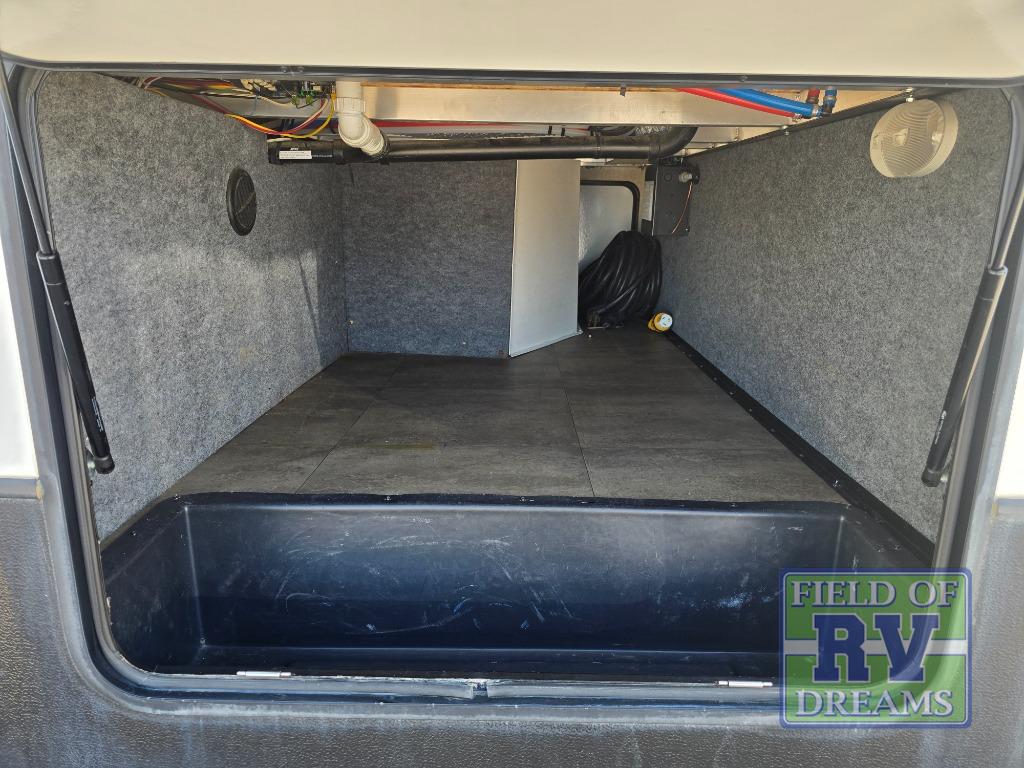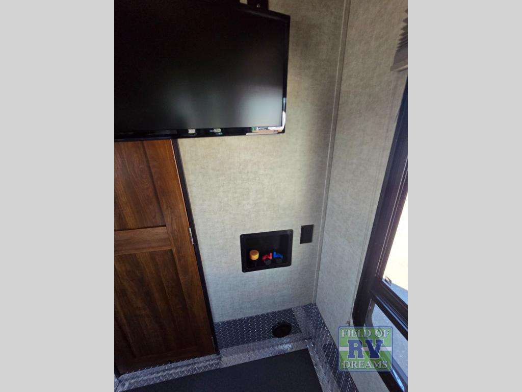 The outside features a 30 gallon fuel station to keep the fun going all weekend long, and also an exterior TV and two 16' awnings to help enjoy a little relaxing entertainment outdoors.