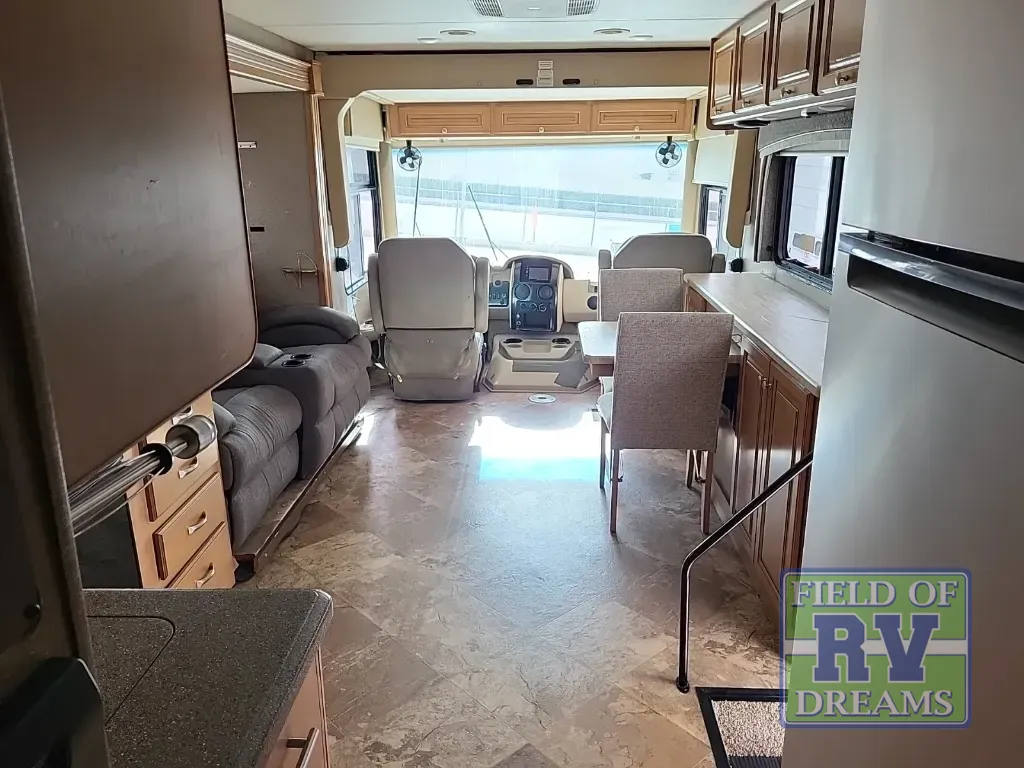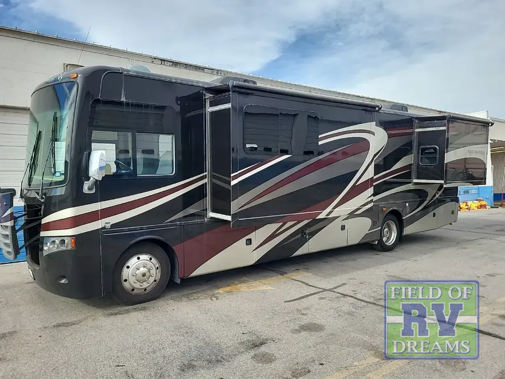 If you are looking for a walk through bath for added convenience with access to the master bedroom and kitchen/living area, plus sleeping space for 6, then this Thor Motor Coach Miramar class A gas motorhome provides just that plus double slides for added interior space, a king size bed slide out, and much more!