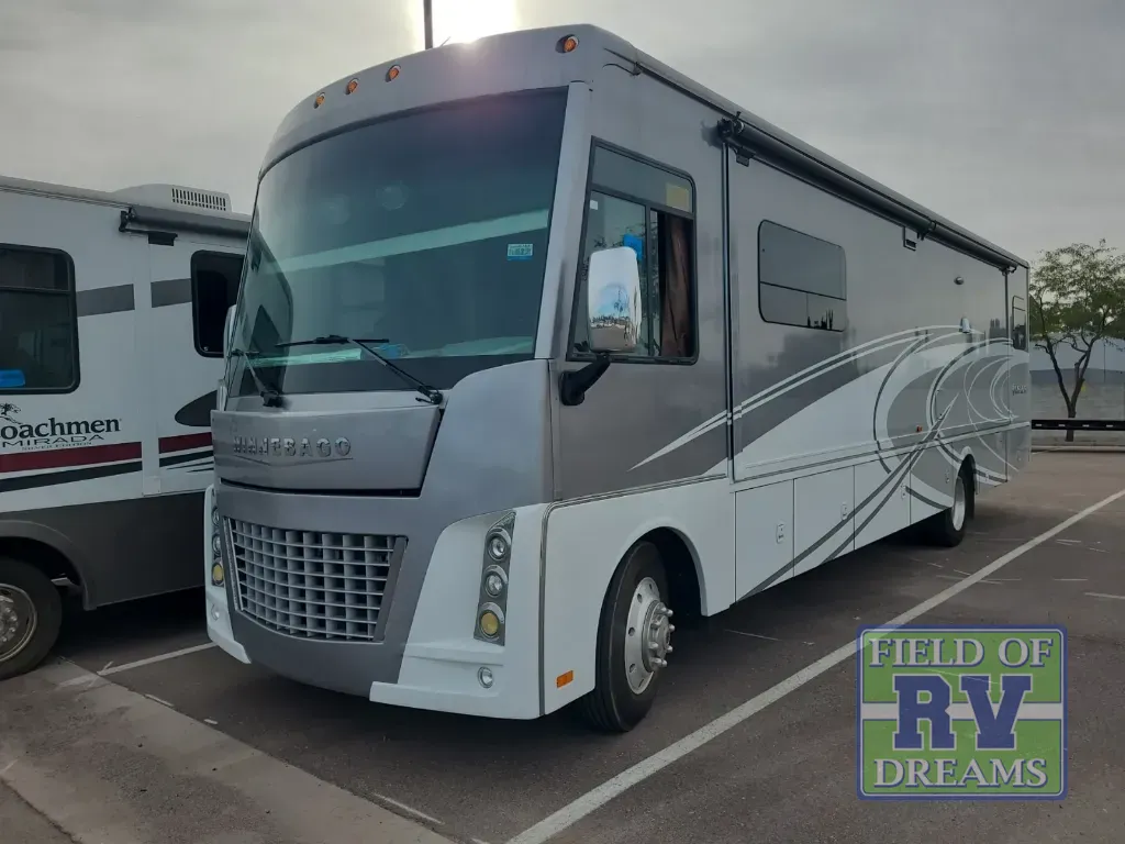This Winnebago Adventurer model 37F offers you a wide open home on wheels with a full wall slide, two additional slide outs, plus so much more! You can enjoy the convenience of an en suite bath, king bed, plus many amenities that feel just like home.