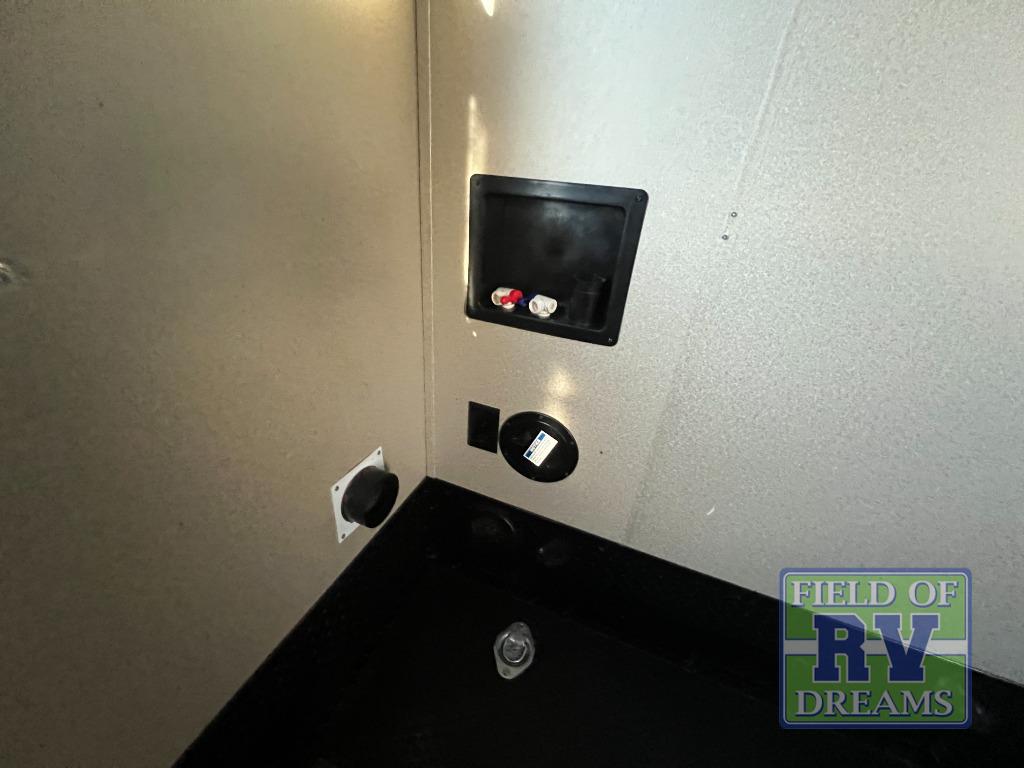 Enter the garage area via the side man door, or rear ramp which makes loading and unloading your toys easy. You may enjoy the ramp door as a raised patio area as well. Inside the cargo space find overhead cabinets, plus washer/dryer prep and TV prepped space. You can also increase your living space by adding optional happi-jac rollover sofas/table with a top bed that stores neatly up at the ceiling when not in use.