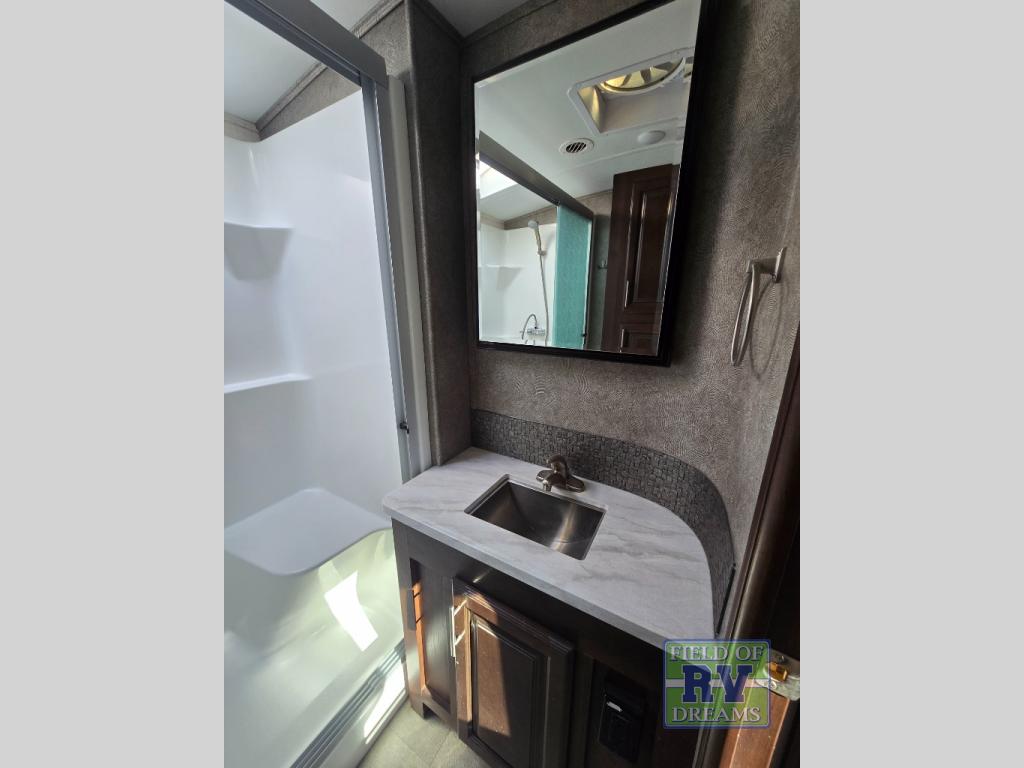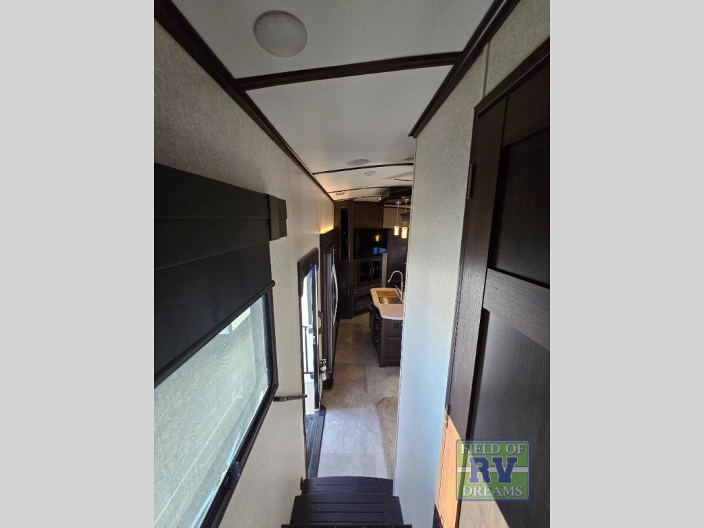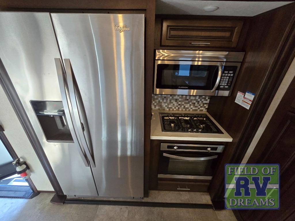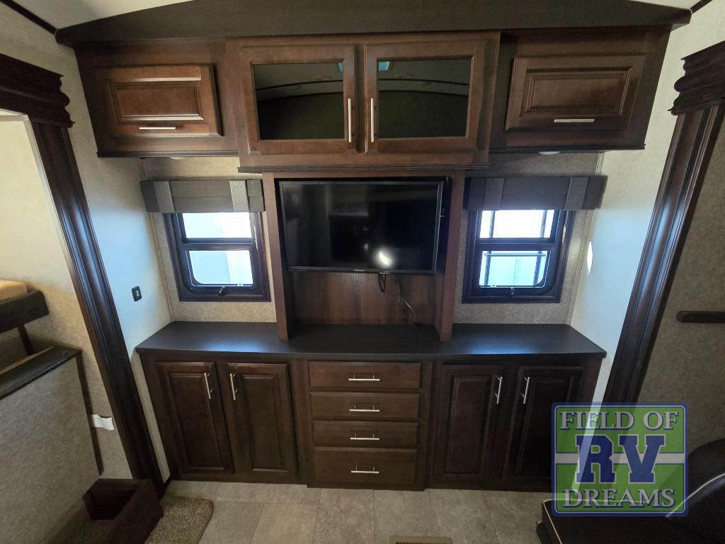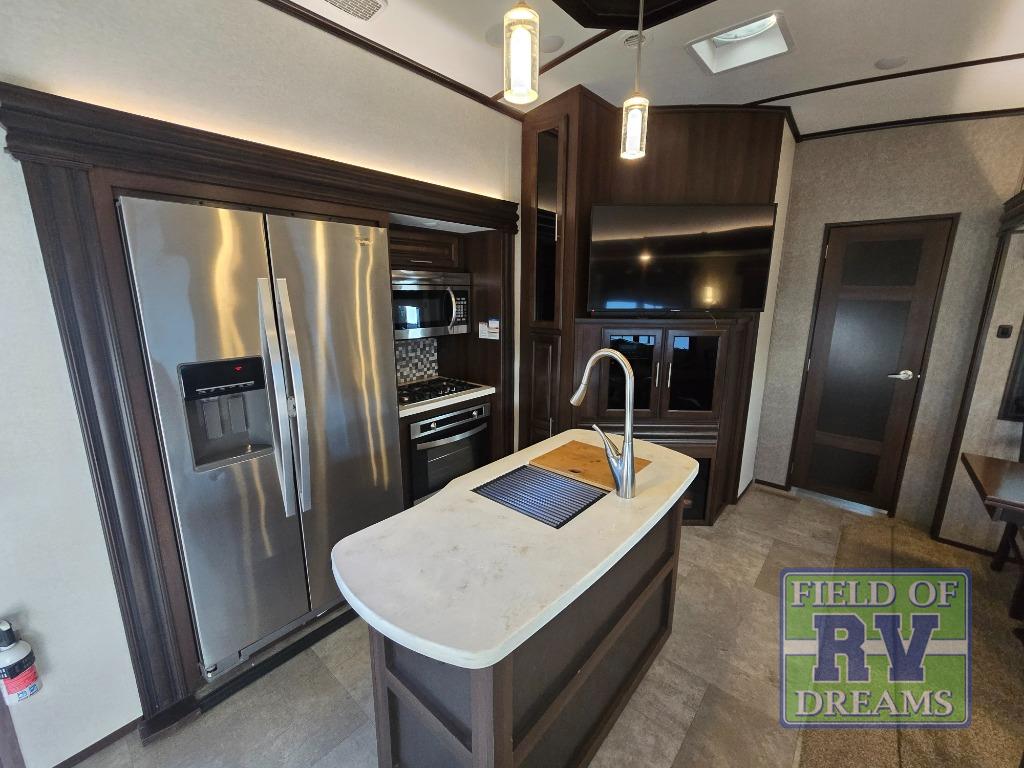 FIVE slide outs, an island with a double sink, a residential refrigerator, and an outdoor kitchen with TV are just some of the highlights throughout this North Point FW model 375BHFS by Jayco. You can easily enter this model from the two entry doors. The second door leads into the half bathroom. Your kids will enjoy their own space in the rear bunkhouse. Here you will find a set of game chairs and three bunk beds. In the private front bedroom you will find a queen bed, a walk-in closet for your hang up clothes plus there is a spot that has been prepped for a washer and dryer. If these are not enough features for you then come check out the options which include the following a king bed, a hide-a-bed in the bunkhouse, a free-standing table and chairs plus more!