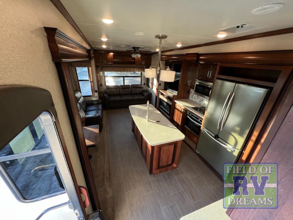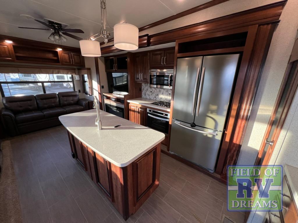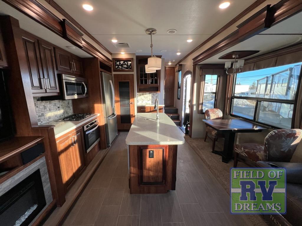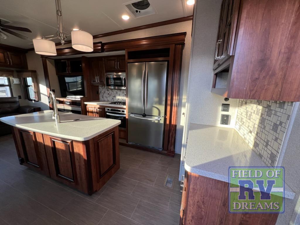 When you choose an Alpine fifth wheel by Keystone RV, you are choosing luxury. There are plenty of packages available to choose from such as the Upgraded Appliance Package with includes a Furrion RV Chef Collection kitchen, a 30” convection oven/microwave, plus extra deep, fully extendable drawers and more. The Deluxe Solid Surface Package features solid surface countertops and sink covers, stainless steel extra deep sink, high rise kitchen faucet, and maximized kitchen storage with more drawers. The Super Cinema Package has a 50” LED TV, Furrion sound system, outside speakers, digital TV antenna, and dual cable & satellite hookups. Also for a little more fun to choose from, check out the North Face Insulation Package and Whisper Air Bundle!