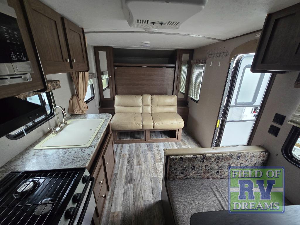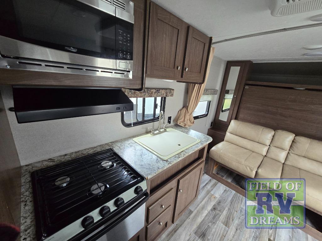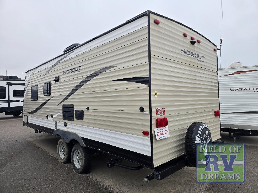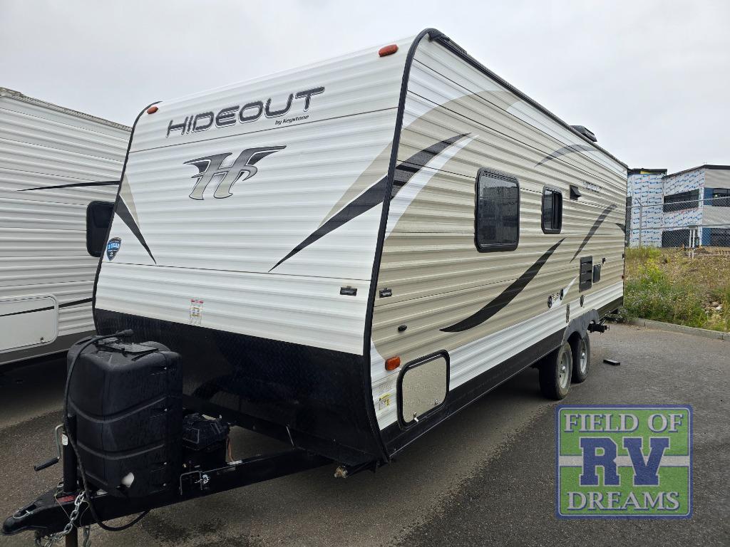 The 2018 Keystone Hideout 21LHSWE is a lightweight travel trailer designed for easy towing and maneuverability, making it suitable for couples, small families, or solo travelers. It offers a functional living space with features like a power awning, LED interior lights, and a 60-gallon water tank. The trailer also includes a walk-on roof, satellite prep, and a backup camera prep, among other amenities.