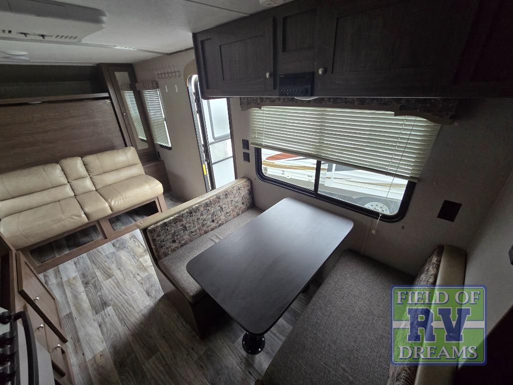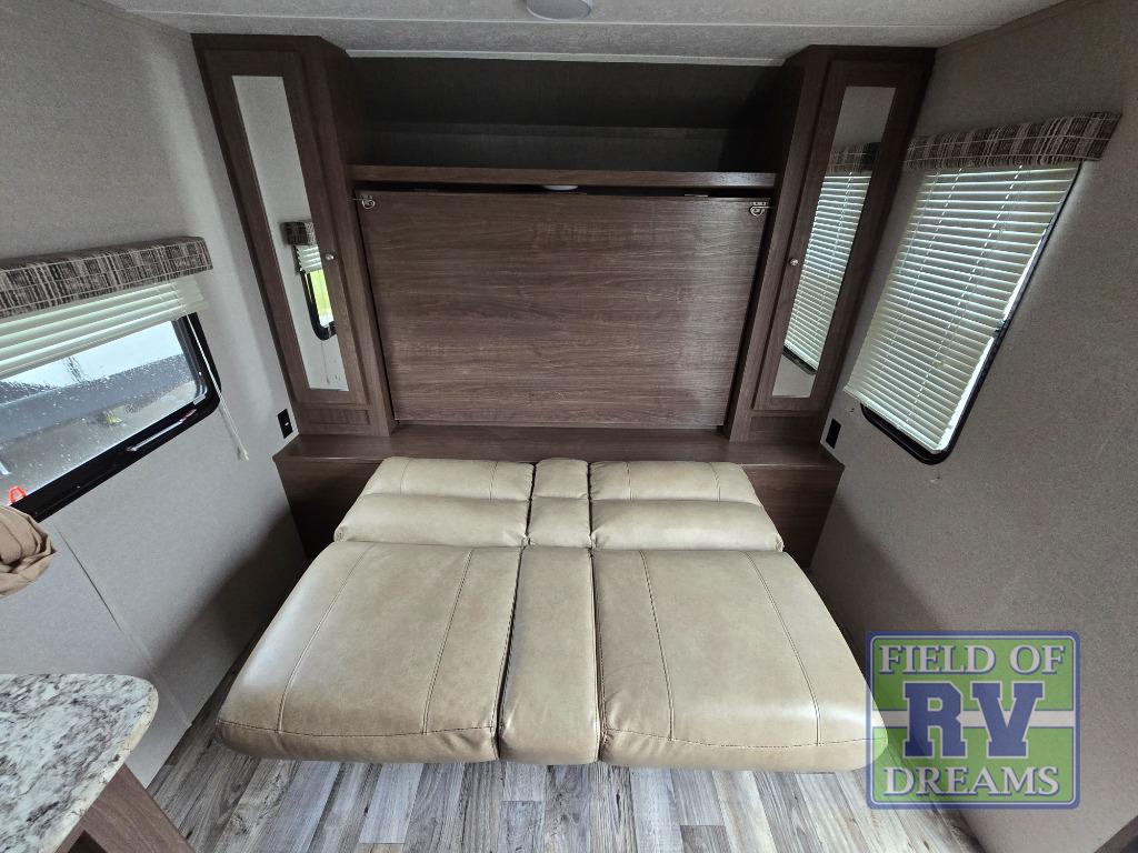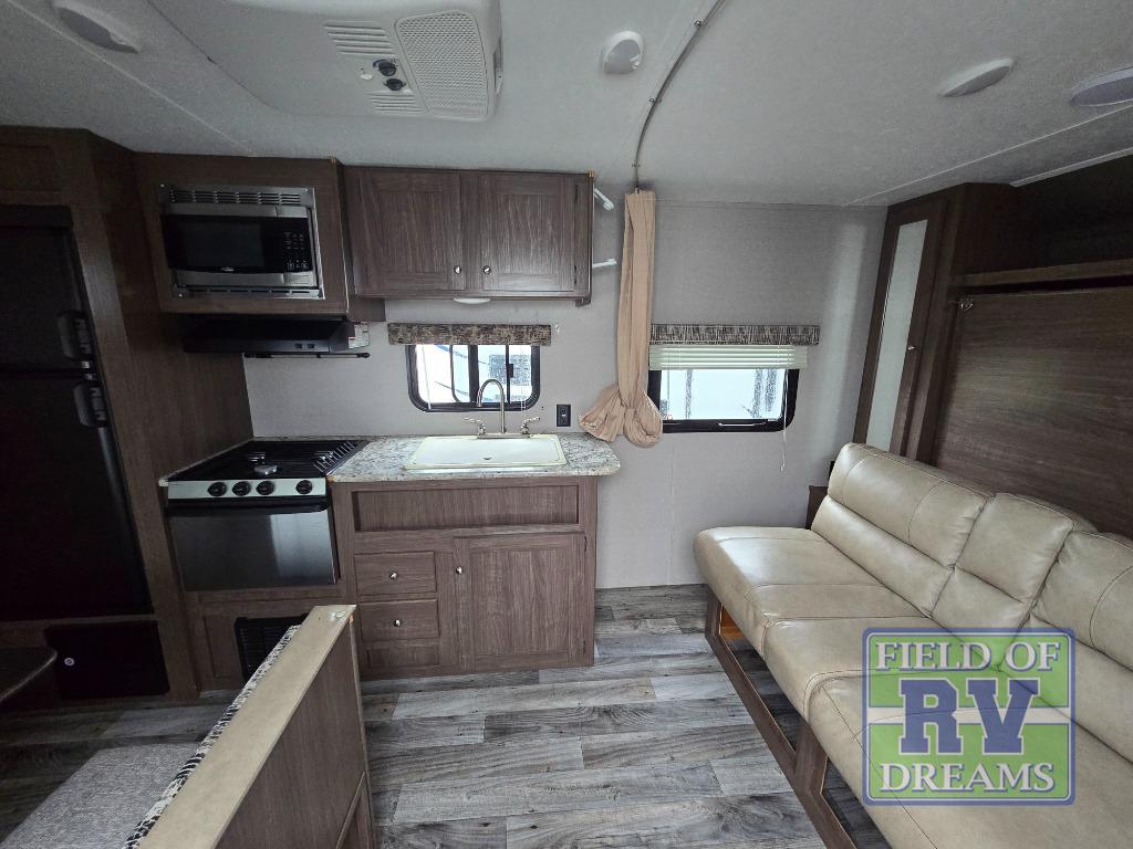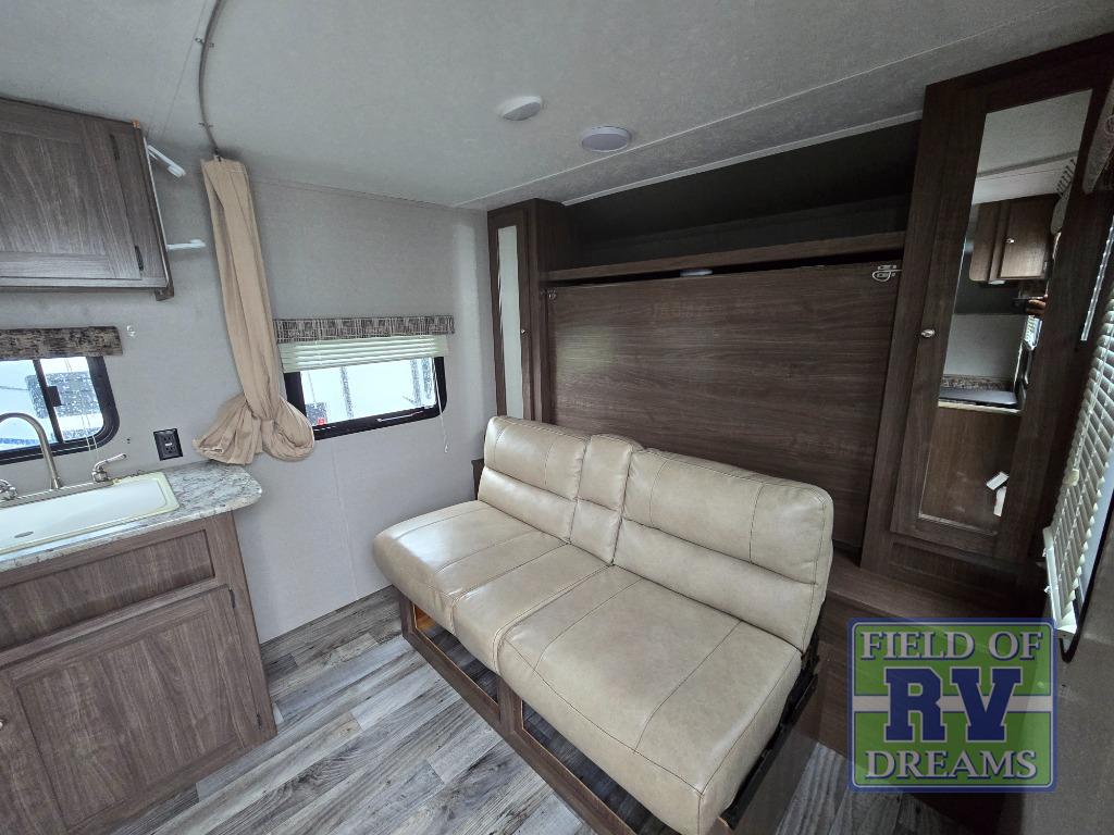 The 2018 Keystone Hideout 21LHSWE is a lightweight travel trailer designed for easy towing and maneuverability, making it suitable for couples, small families, or solo travelers. It offers a functional living space with features like a power awning, LED interior lights, and a 60-gallon water tank. The trailer also includes a walk-on roof, satellite prep, and a backup camera prep, among other amenities.