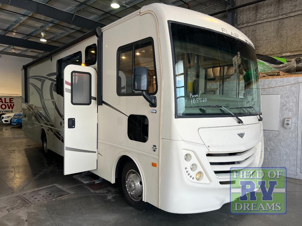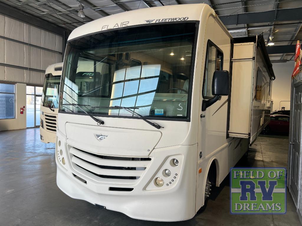 You will love the convenience and the functionality of the Fleetwood Flair. Each model includes a Hide-A-Loft drop down queen bed with a 600 lb. capacity, a residential sofa, and lino flooring. An over the range microwave, kitchen backsplash, and a residential single handle faucet with a pullout sprayer come standard in these motorhomes. In each unit you will be pleased to find a Bluetooth stereo system in the bedroom plus a USB port to charge your devices. Clean up after a day of hiking with family and friends with an exterior shower provided with each motorhome, plus you'll find a pass through storage to hold your larger items. These units have also been constructed with four point fully automatic hydraulic leveling jacks, a full coverage heavy duty undercoating, and a quiet, ducted A/C system. Come treat yourself with one of these Flair motorhomes by Fleetwood RV, you won't regret it!