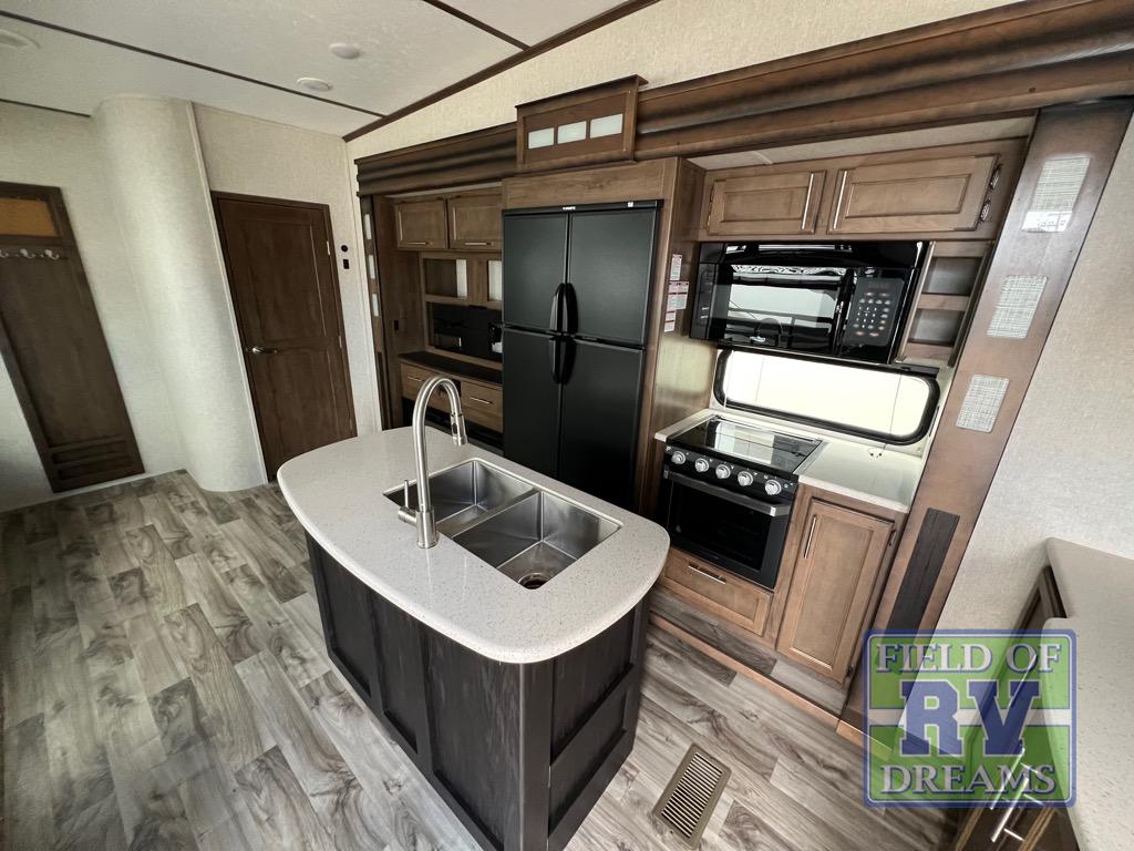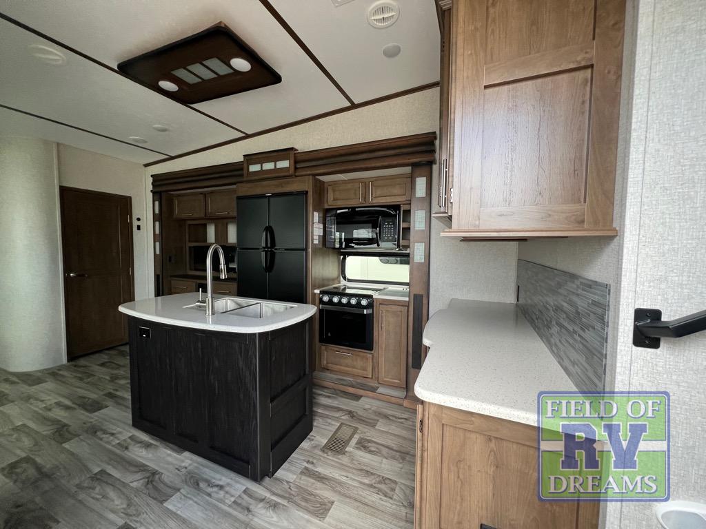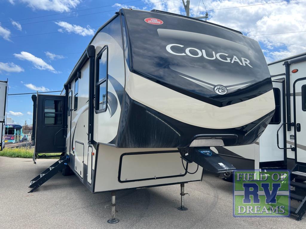 With any Keystone Cougar you will enjoy the Max Turn technology in the front cap when driving around town and parking the fifth wheel. You will be able to camp in any weather with the forced-air heated and enclosed underbelly with enclosed dump valves and Astrofoil insulated slide floors. If you need to stay cool or warm, these units have you covered. Inside, you are sure to love the LG solid surface countertop upgrade in the galley, the two TVs, the Cougar vintage maple glazed hardwood, and much more! You will also love the IN-Command Smart automation with global connect offering full remote thermostat control including scheduling with the mobile app, control of slide rooms, awnings, and light groups also available on the touchscreen display commander, plus there is a panic/intruder alert. Come get your favorite Cougar model and start making memories.