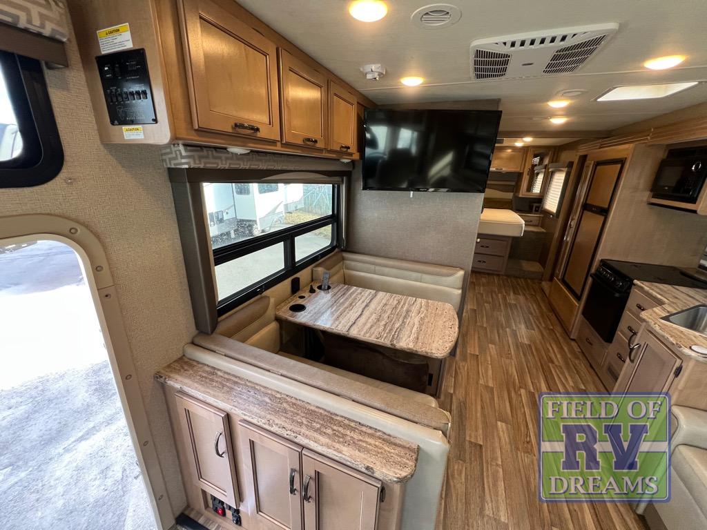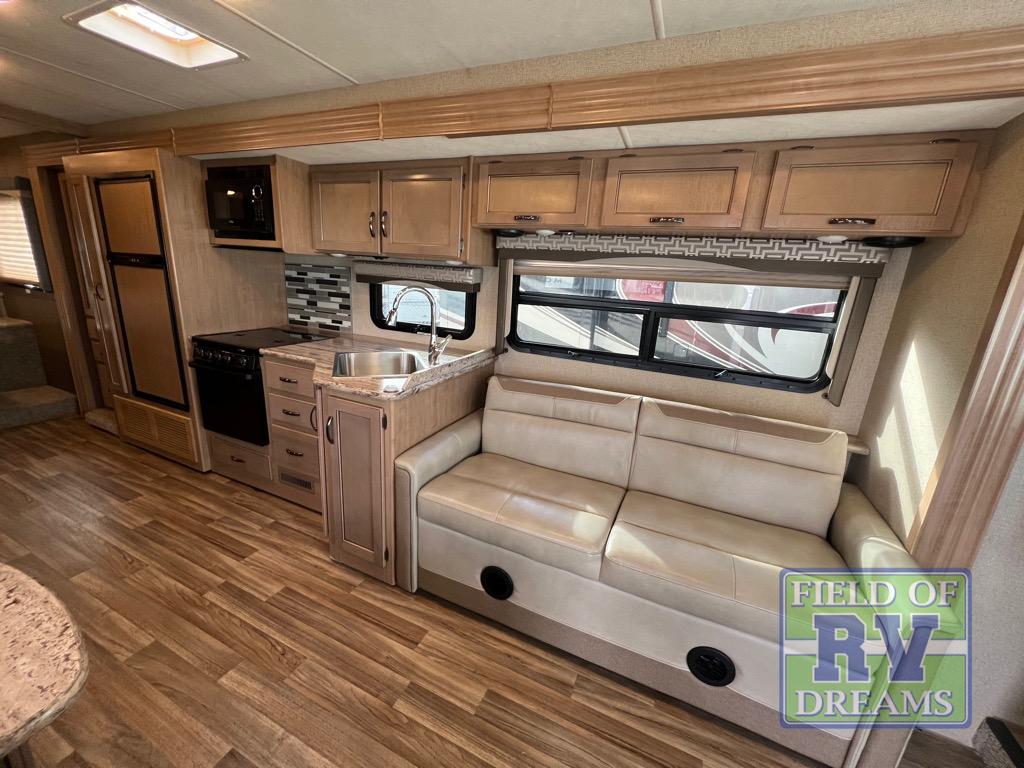 Imagine meeting other RVers at a college tailgate party. Now imagine everyone is visiting outside this A.C.E. Class A gas motorhome under the awning while watching the previews for the football game. You can make snacks for everyone with the kitchen amenities, and the full bathroom will be a hit as well. Some of you might even enjoy relaxing on the furniture inside before going to the stadium. The captain's chairs can be turned around to face the Dream dinette and jackknife sofa providing more seating. After the game is over and your team has won, you can return to the RV park for a good night's rest on your own queen-size bed while your friends sleep on the furniture or on the drop-down bunk above the cab. Go, fight, win with this motorhome!