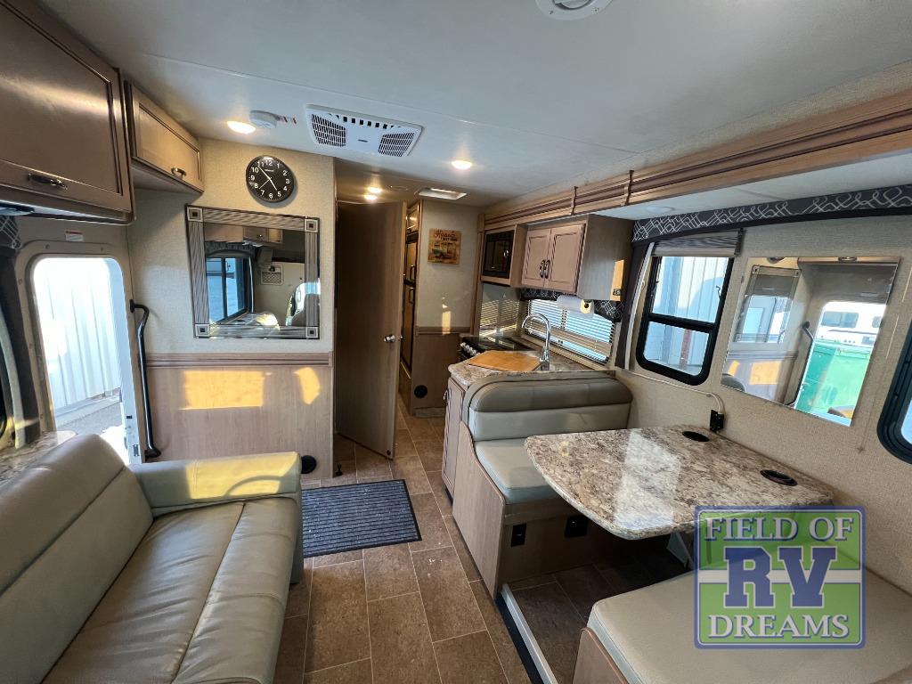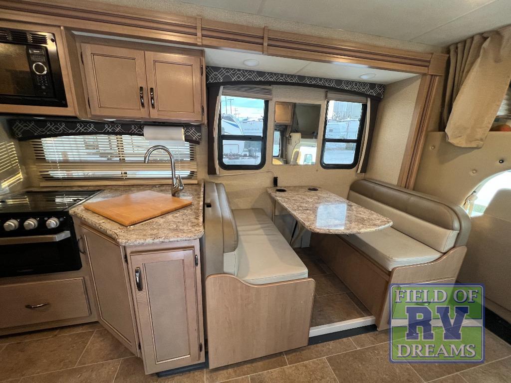 Enjoy each adventure in this Thor Motor Coach class C gas home on wheels. This Chateau offers added comfort including a large slide out in the living area and a rear bedroom featuring a queen-size bed with a Denver Mattress. Within the slide out there is a 71" Dream Dinette where you can enjoy your meals or a card game or two, and at night this area easily converts into additional sleeping space, if needed. In the cab there is a touchscreen dash radio and a convenient back-up monitor. This model also features a pop-up countertop outlet and charging center for your electronics in the kitchen!