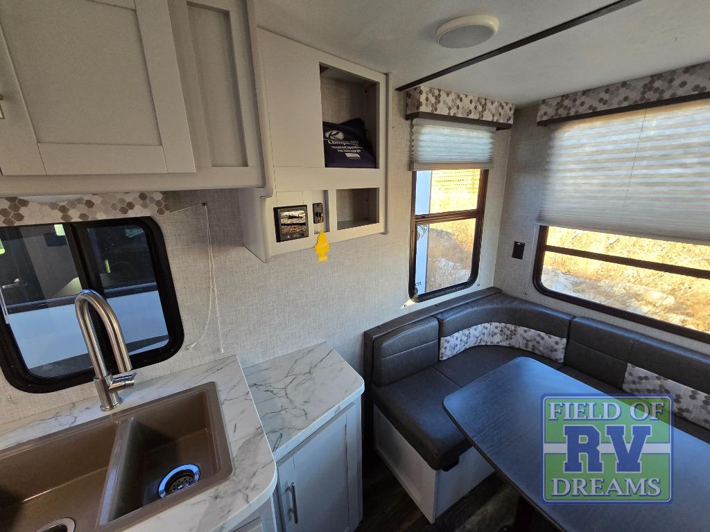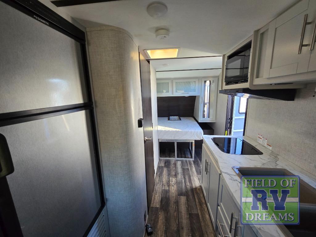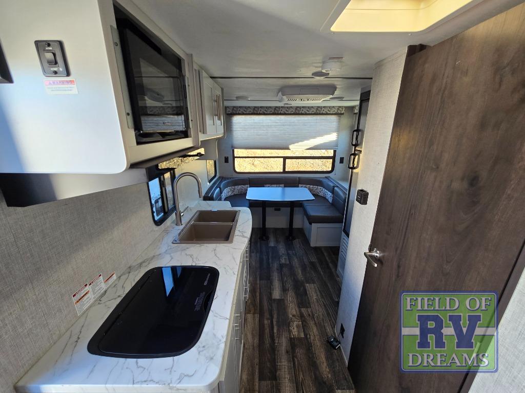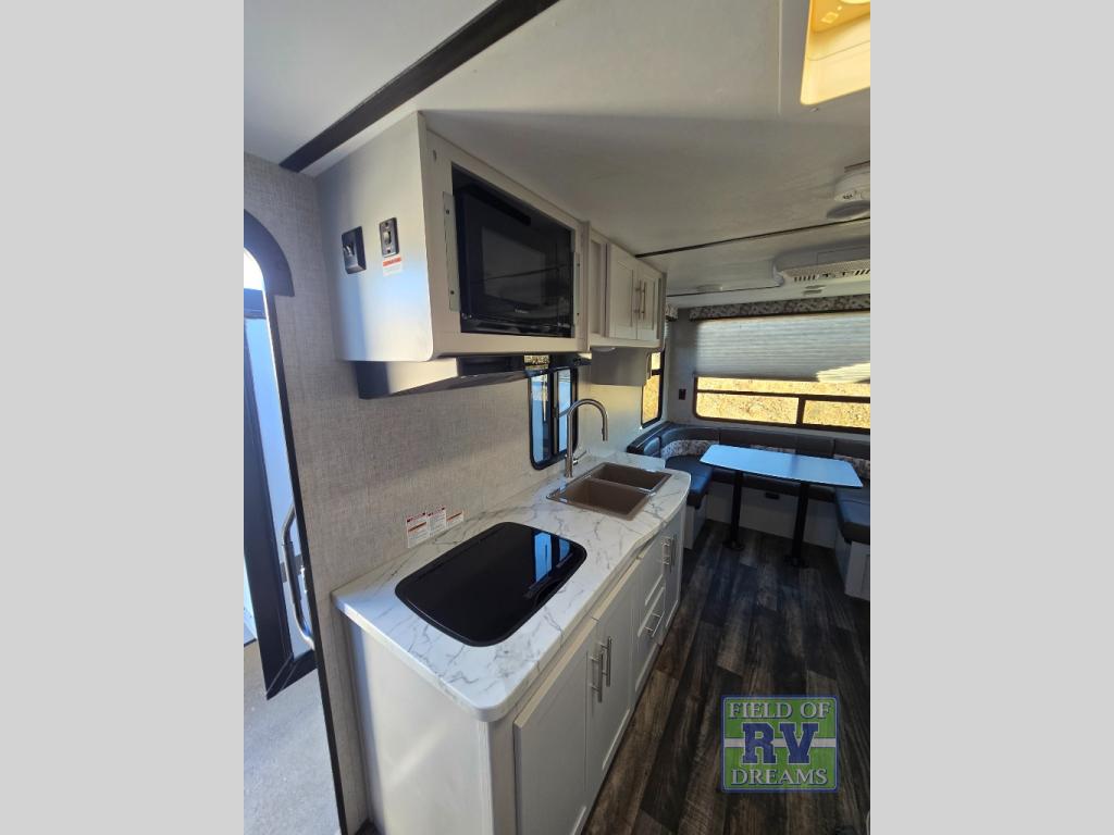 The 2020 Keystone Bullet Crossfire 1900RD is a lightweight, single-axle travel trailer designed for couples or small families, featuring a front corner queen bed, a rear U-shaped dinette (which converts to sleep more), and a split kitchen with a double-burner cooktop and 8 cu. ft. fridge, plus a full bath and pass-through storage, all in a towable, non-slideout design with modern comforts like a tankless water heater and HyperDeck flooring
