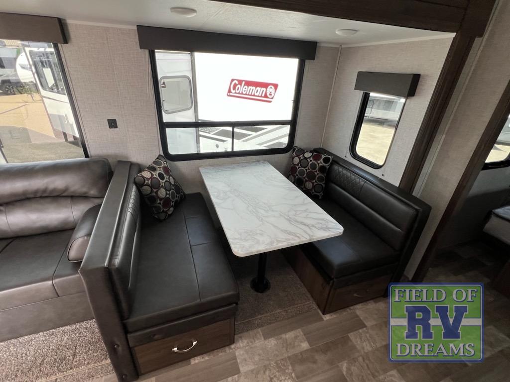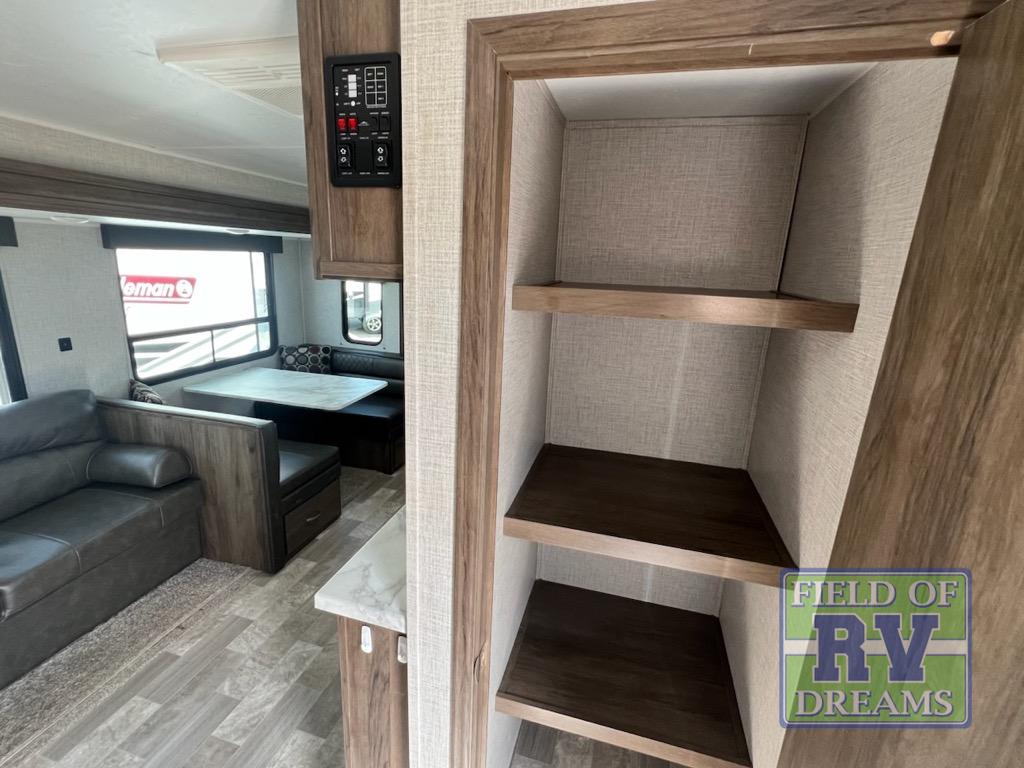 From its full rear bathroom with a 30" x 36" shower and linen closet to its front private bedroom with a king-size bed, under-bed storage, and bedside wardrobes, this Della Terra travel trailer allows you to live just as comfortably as you do at home! The large slide creates extra floor space in the main living area so that you can gather together on the jackknife sofa and booth dinette without feeling cramped, and you will be able to grab your favorite snacks from the walk-in pantry before sitting down for a night full of games. And the kitchen offers everything you will need to keep your bellies full, including a 10 cu. ft. stainless steel refrigerator.