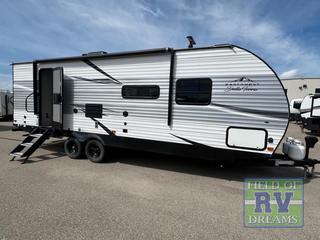 Each one of these EAST TO WEST Della Terra travel trailers have been built with an automotive deposition Norco® coated frame! They offer comfort and convenience with new 2021 features that include bedside drawers with hidden CPAP storage and 110V outlets to keep your electronics at 100%. The large oversized kitchen window behind the sink will allow you to look out at your beautiful scenery as you prepare delicious meals. The universal docking station will make life easier, and the MORryde solid step ensures you will safely enter and exit the unit. A fireplace comes standard in all slide models now so you can enjoy a cozy night inside. Come find the model that best fits you!