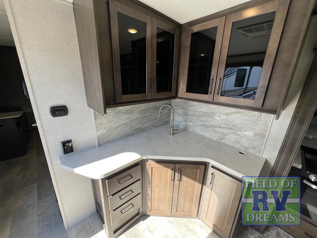 Each Forest River Rockwood Signature Ultra Lite travel trailer and fifth wheel is constructed with a painted fiberglass front cap with clear coat, frameless windows, and a fully laminated one-piece walkable roof for easy cleaning after a weekend at the campground. You will appreciate the radiant foil in the underbelly, front caps, and slide out floors, plus each model includes 12v thermostatically controlled heated tanks so you can camp year around if you choose. Inside, you will find residential solid-surface kitchen countertops, an 86" interior height in the travel trailers, soft-closing drawer guides in the fifth wheels, and many more at-home features. These travel trailers and fifth wheels also include many hassle-free conveniences, such as a Water-Pur filtration system, a tire pressure monitor system, back-up camera prep, and the list goes on!