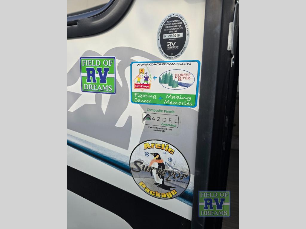 Only the Forest River Surveyor Legend travel trailer can inspire legendary adventures! The gel-coated fiberglass exterior is outfitted with front diamond plate protection, an integrated front windshield, preparations for rooftop solar power and a rear camera, and an adjustable platform step on the main entry. You'll be able to use the exterior LED speakers whenever you want to play music or a podcast, and the designer Shaw linoleum flooring is a quality base that will clean up easily if you track mud indoors. There are vented side windows in the slide outs so that you can bring in some fresh air, and each model is ready for cable/satellite.
