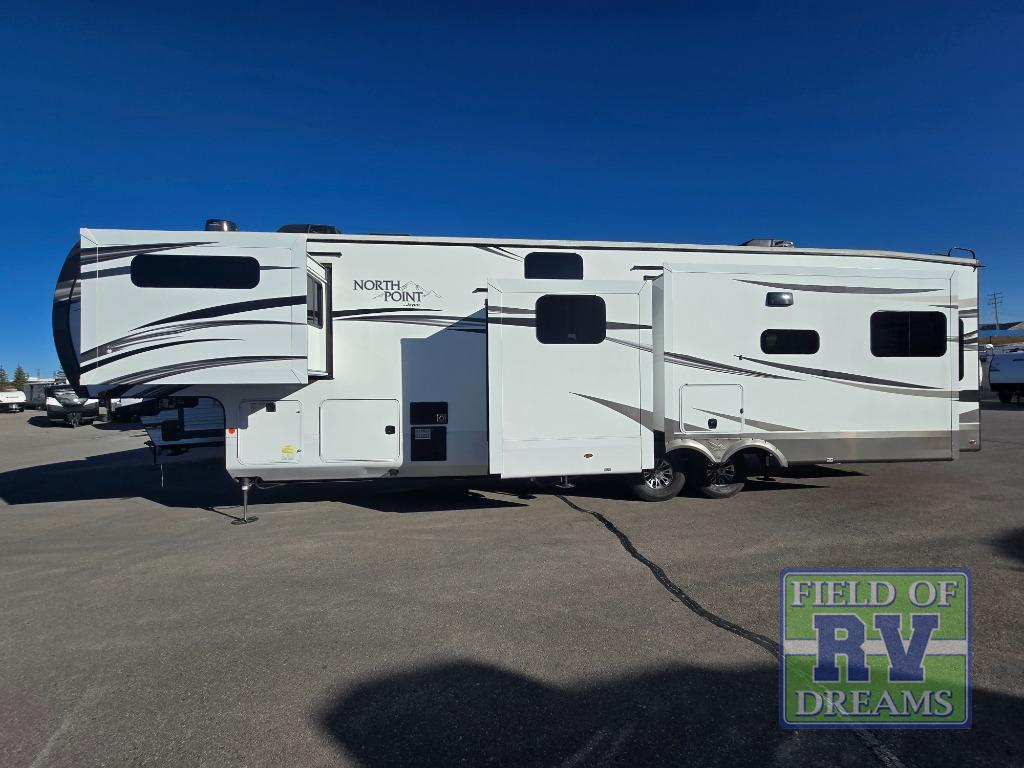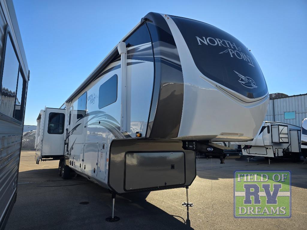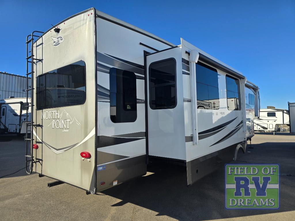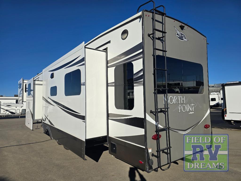 These Jayco North Point fifth wheels offer sleeping spaces and luxurious features to accommodate all types and sizes of groups! You will have generations of family fun with construction features like the Stronghold VBL™ aluminum framed, vacuum bond laminated walls and a Magnum Truss™ XL6™ roof system with a one-piece, seamless DiFlex II material which is the strongest tested roof in the industry. There are three mandatory packages to make your traveling experience even better. One of the packages is a five star handling package which includes Dexter axles with Nev-R-Adjust brakes, Dexter heavy-duty shackles with wet bolt fasteners and bronze bushings to resist the wear and tear of towing, Goodyear beast tires, a MORryde rubberized suspension system, and a MORryde pin box so you can travel forward, backward, and side-to-side for a smoother tow. Come choose your favorite model today!