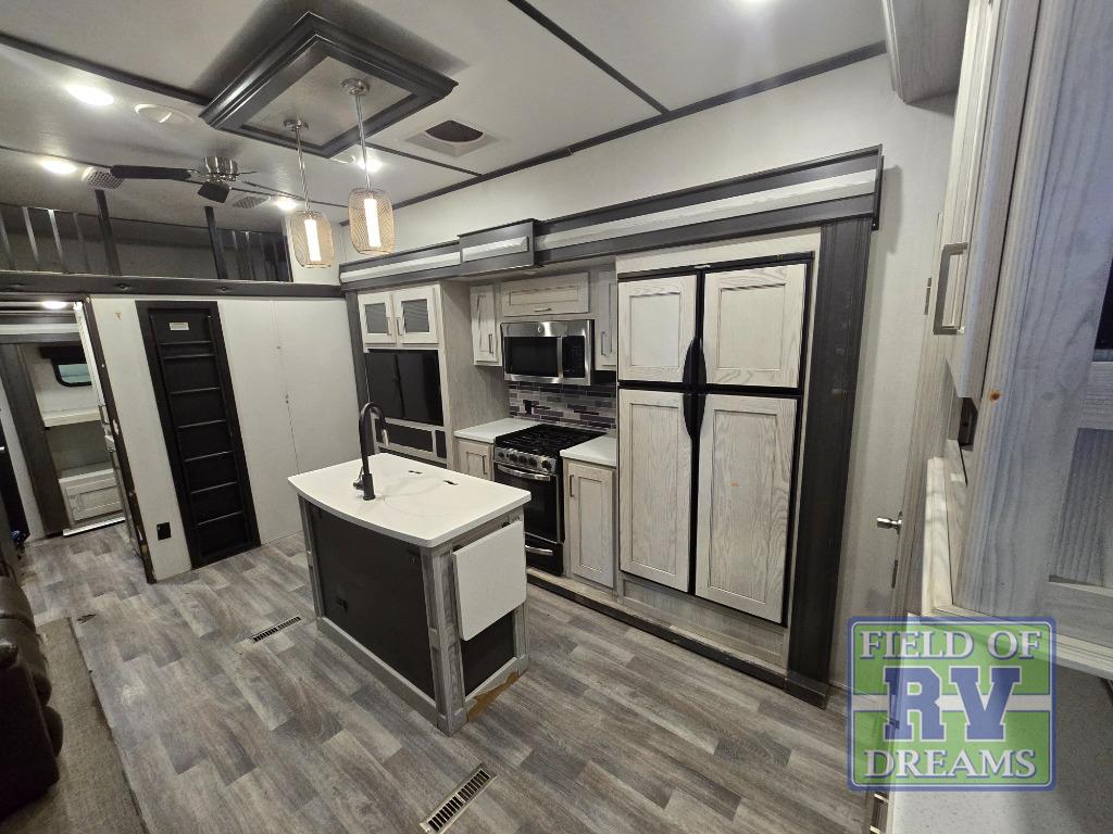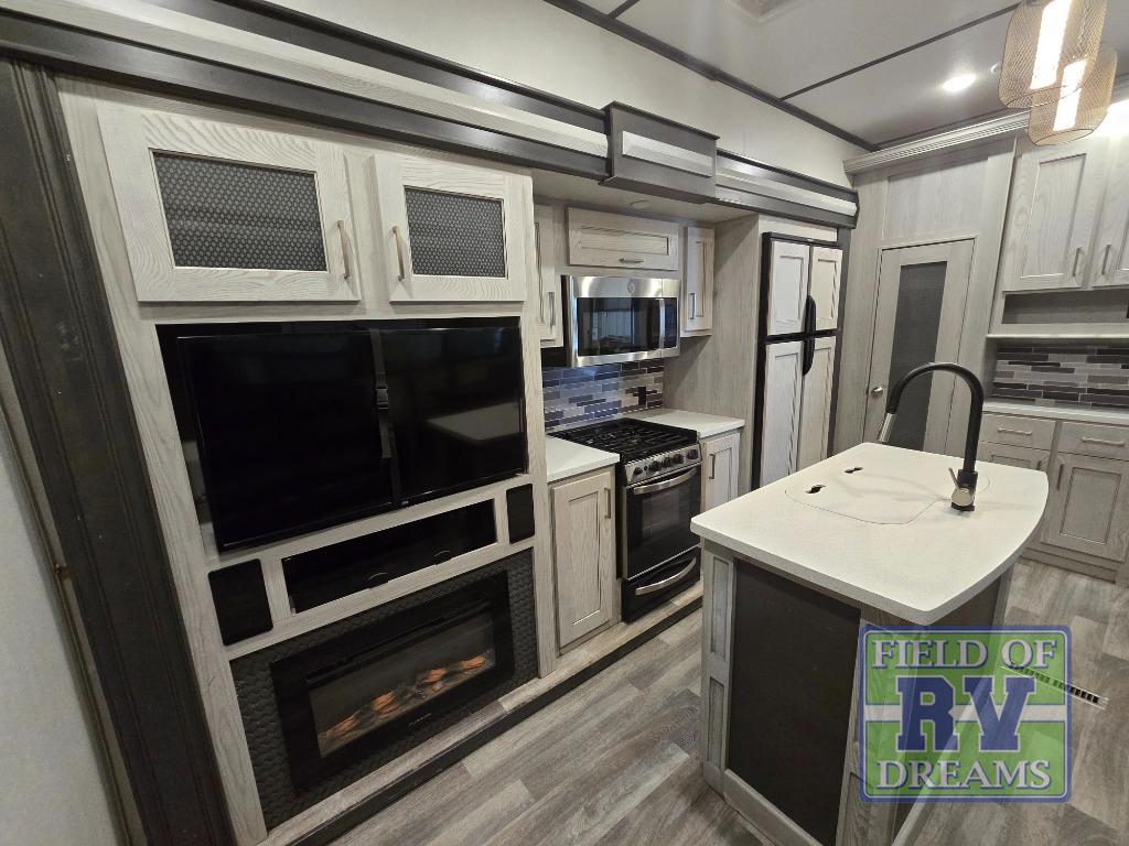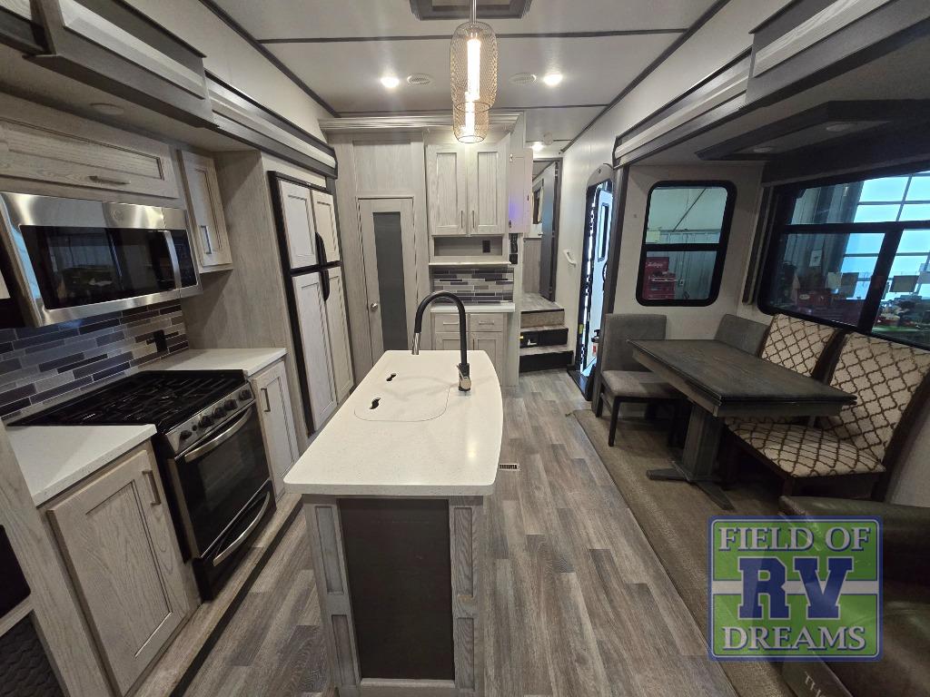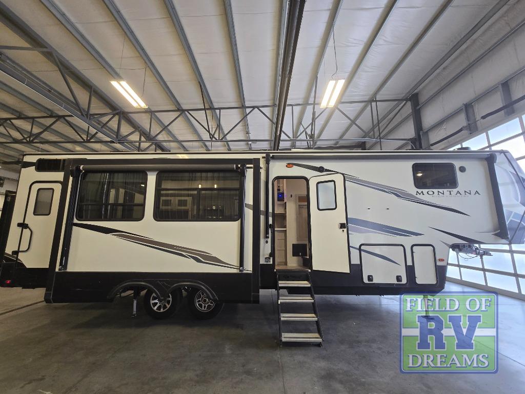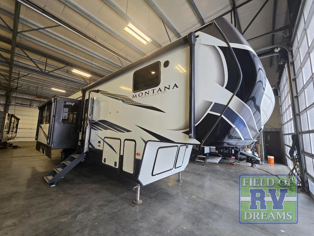 With each Montana High Country fifth wheel by Keystone you will enjoy family-friendly features, lightweight floorplans, and drop-frame construction for maximum storage. Each model is built for four season living with the heated and enclosed underbelly and the astrofoil insulated slide floors and underbelly. The Mystic Ash cabinetry, hardwood decorative slideout fascia, and accent crown molding create a luxurious fifth wheel everyone can get used to. These models include a Whisper Quiet A/C system to cool your space quietly and evenly, plus there is a 35,000 BTU furnace that will allow you to extend your camping season. The Montana High Country fifth wheels are equipped with a Road armor shock absorbing hitch pin for easy towing, and set-up will be a breeze with the Hitch Vision with LED lighting. There are many more features to love about these fifth wheels, like the MaxTurn front cap, the Solera series power awning(s), the residential appliances, and the list goes on!