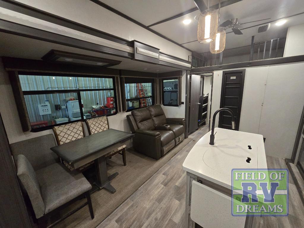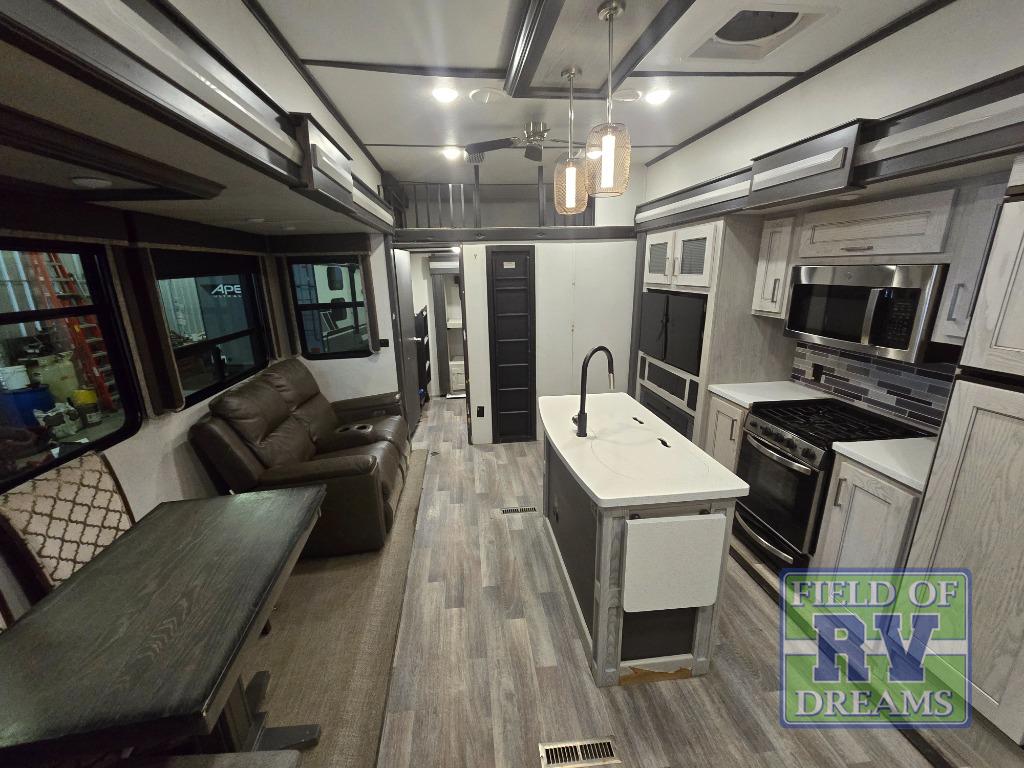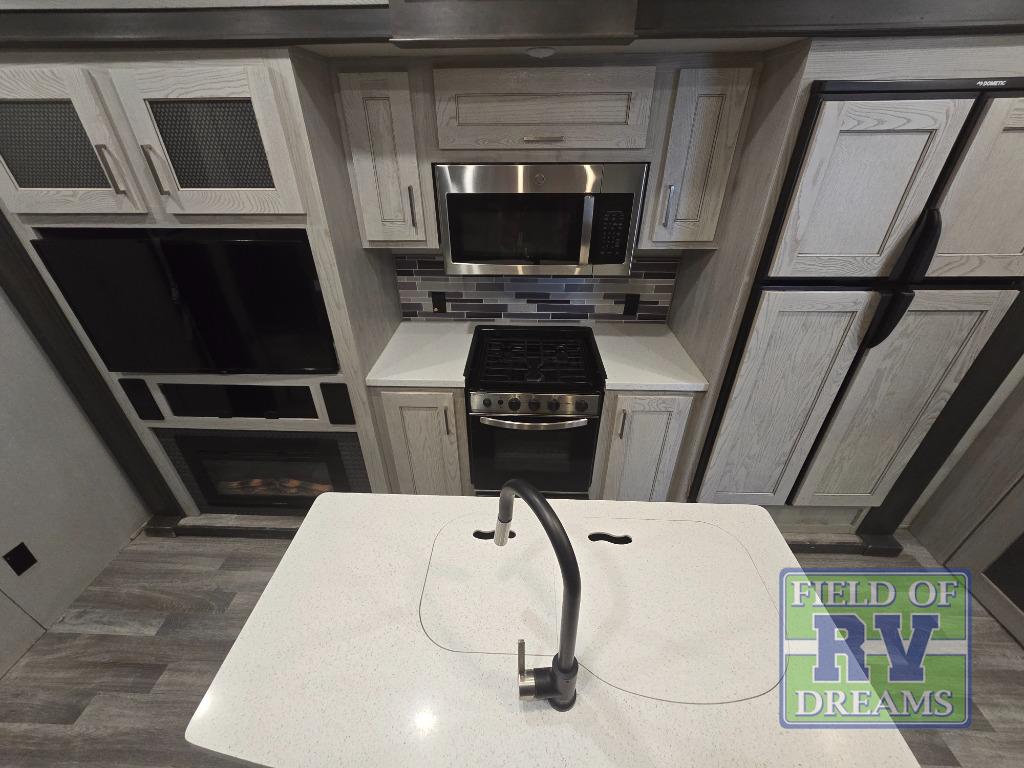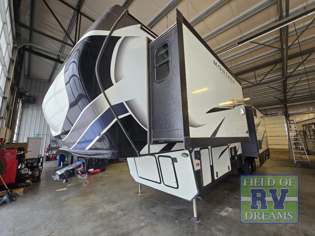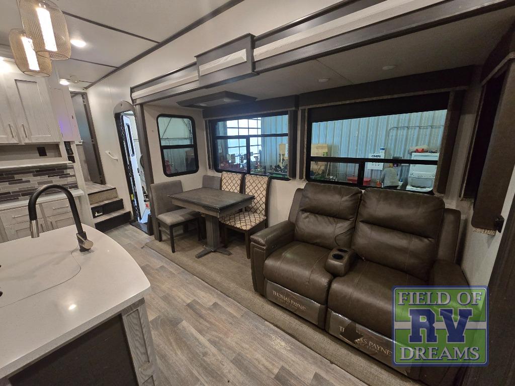 With each Montana High Country fifth wheel by Keystone you will enjoy family-friendly features, lightweight floorplans, and drop-frame construction for maximum storage. Each model is built for four season living with the heated and enclosed underbelly and the astrofoil insulated slide floors and underbelly. The Mystic Ash cabinetry, hardwood decorative slideout fascia, and accent crown molding create a luxurious fifth wheel everyone can get used to. These models include a Whisper Quiet A/C system to cool your space quietly and evenly, plus there is a 35,000 BTU furnace that will allow you to extend your camping season. The Montana High Country fifth wheels are equipped with a Road armor shock absorbing hitch pin for easy towing, and set-up will be a breeze with the Hitch Vision with LED lighting. There are many more features to love about these fifth wheels, like the MaxTurn front cap, the Solera series power awning(s), the residential appliances, and the list goes on!