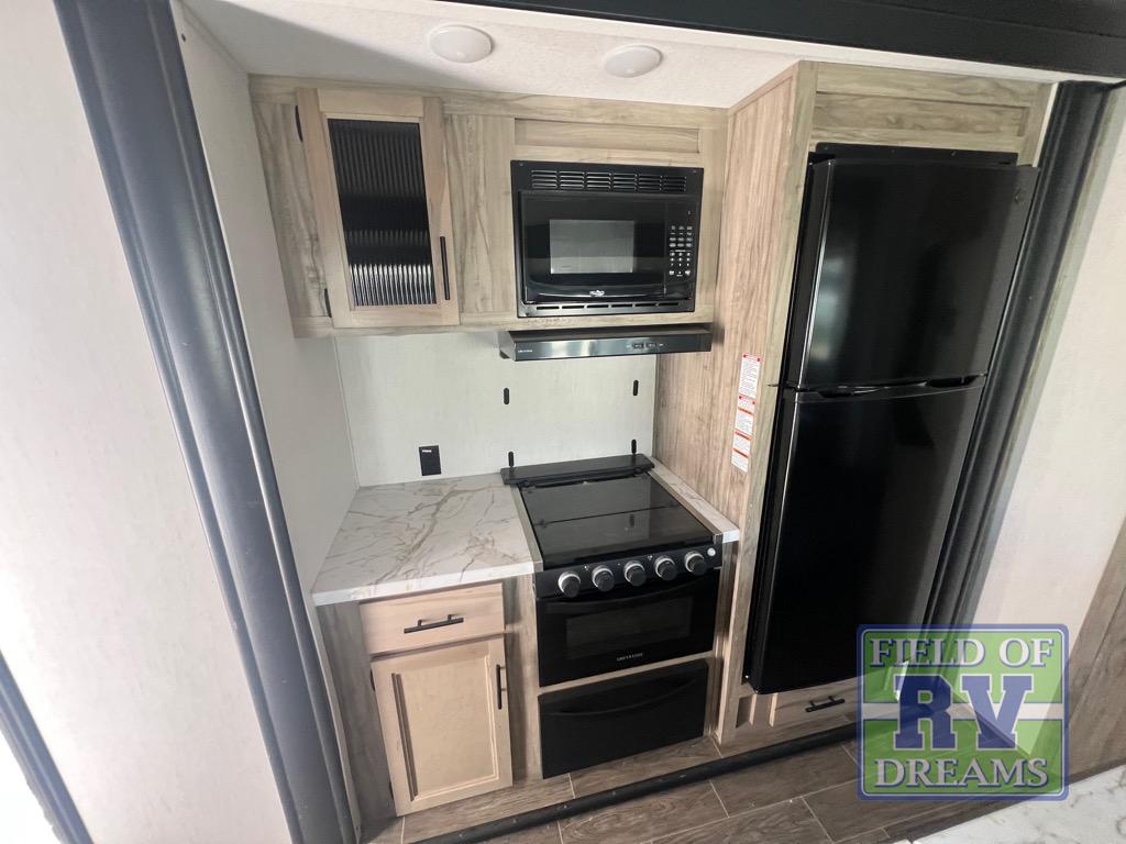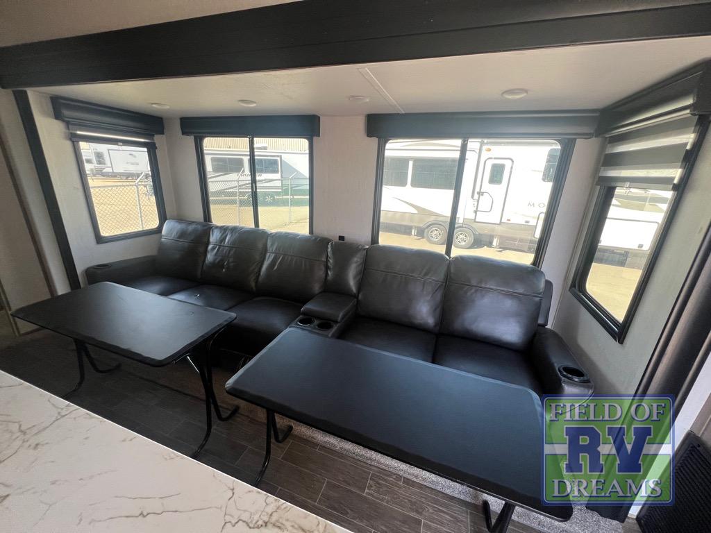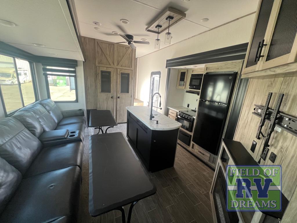 You will have amazing residential comfort in the Forest River Cherokee Arctic Wolf Suite fifth wheels! These units have a “SuperStor” dual-cavern basement storage compartment to allow you to bring more gear, and they have been constructed with a “ToughBend” rigid skirt metal design, a 1x engineered wood “SuperTruss” roof structure with 3/8" decking, and a 5/8” tongue-and-groove plywood floor decking. Each model includes Leash Latch pet safety technology, an outside shower with hot/cold water, preparations for an exterior TV, motion-sensing lighting, and a smart monitor panel with smart phone Bluetooth connectivity. The supersized central air conditioning unit (15,000 BTU) with quick cool air dump feature and second oversized 15,000 BTU ducted air conditioner will cool your unit down in a snap when you camp in the hot summer months.