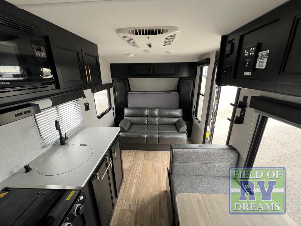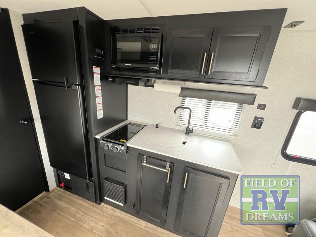 You will experience versatile living in this travel trailer with the Cherokee Sleep System! It lets you easily convert the front queen bed into a comfortable sofa to sit on during the day. Freshen up each morning in the full rear bathroom with the tub/shower and large sink with cabinet storage below it and mirror above it. Fill your bellies with the perishables stored in the 11 cu. ft. Cannon high efficiency refrigerator and cook them on the high output cooktop then enjoy them at the booth dinette. You could even prepare a meal while breathing in some fresh air at the outside mini kitchen while staying protected by the 12' power awning. Easily store all of your outdoor gear in the outside storage area too!