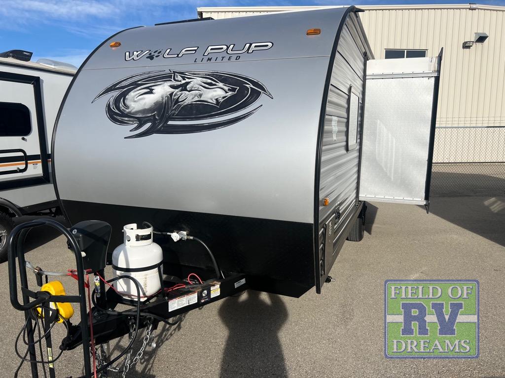 Each one of these Forest River Cherokee Wolf Pup travel trailers and toy haulers are lightweight and easy to tow! They are fully self contained with ample tank capacities, an abundance of storage space, and filled with at home amenities. The aerodynamic smooth radius front profile, the Power Gear frame technology, and the space saver rail design make them easier to maneuver. You will also appreciate the seamless roofing membrane with heat reflectivity to keep the sun from making your unit a hot box. The tongue and groove plywood flooring will hold up for years of fun and the USB charging stations help to keep your electronics at 100% while you're away. Come find the best model for you today!