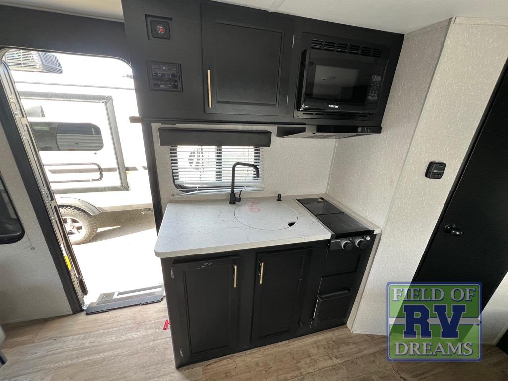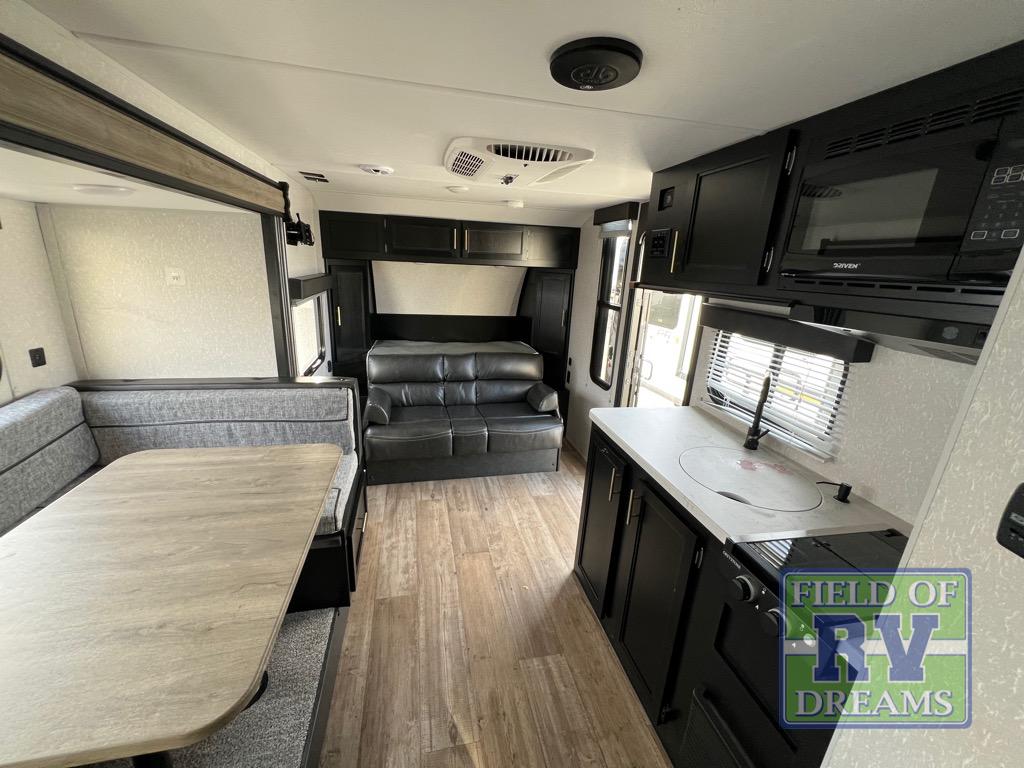 The chef will love cooking in this travel trailer! They have the option to cook either indoors with the high output cooktop and 11 cu. ft. Cannon high efficiency refrigerator or at the outside mini kitchen to breathe in some fresh air while they cook. Enjoy all of your meals at the U-shaped dinette slide and even transform it into an extra sleeping space if needed. You will also appreciate the versatility of the Cherokee Sleep System with the front queen bed to sleep on at night that can easily convert into a sofa for seating during the day. After a fun day at the beach, you can rinse the sand out of your hair with the tub/shower in the rear corner bathroom!