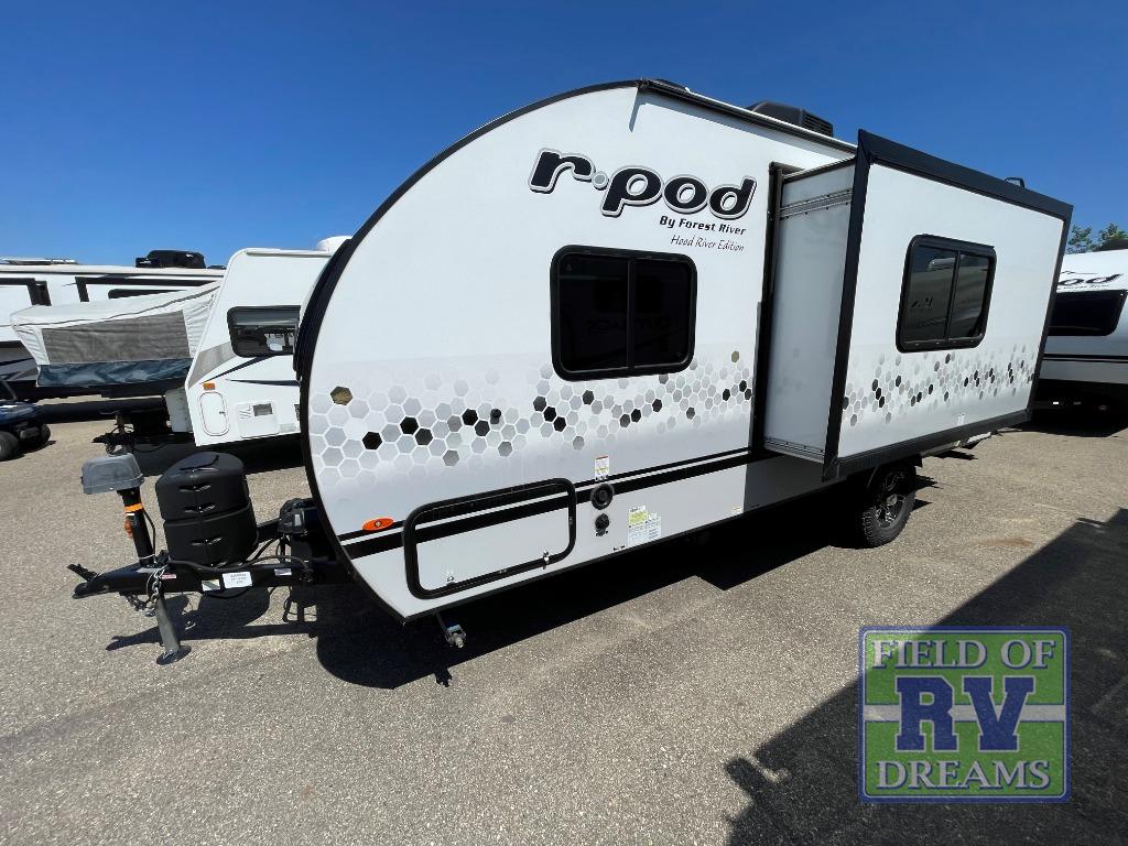 The Forest River R-Pod travel trailer is an excellent choice for lightweight towing and accommodating amenities! There are some enticing inclusions for the R-Pod, like the Azdel composite panels that will completely withstand water damage and the central vacuum system that will make it easy to clean up messes. The R-Pod has the largest refrigerator in its class, and there is also a black glass entrance door that enhances the sleek look of the stylish exterior. The R-Pod has been prepped for a solar panel and a back-up camera, and it also comes with an independent suspension torsion axle for a smooth ride to the campsite.
