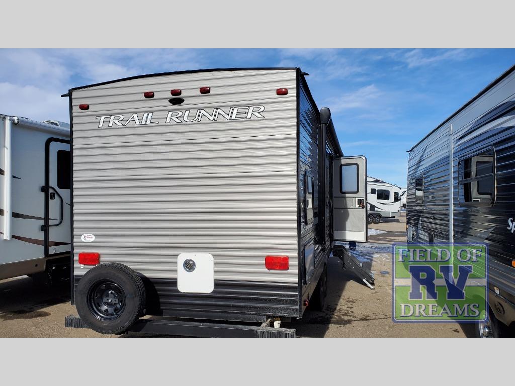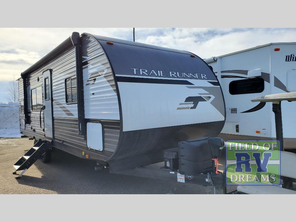 Paradise awaits at the end of the trail with one of these Heartland Trail Runner travel trailers! Experience better wind and water deflection, added strength, and a reduction of tongue weight with the hybrid aluminum front profile that has an aerodynamic radius front cage. A cambered structural steel I-beam frame holds them together and a heated enclosed underbelly protects the units vitals. There is an industry leading mammoth storage space of 57 cu. ft. pass-through storage so you can bring all of your outdoor gear with you. Roller shades in the main living area, woven flooring in all slide rooms, master suites with CPAP storage, and upgraded pressed counters give you the at-home feel you desire. Come find the perfect model for you today!