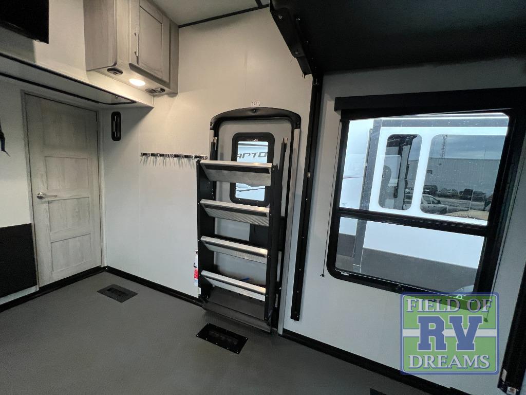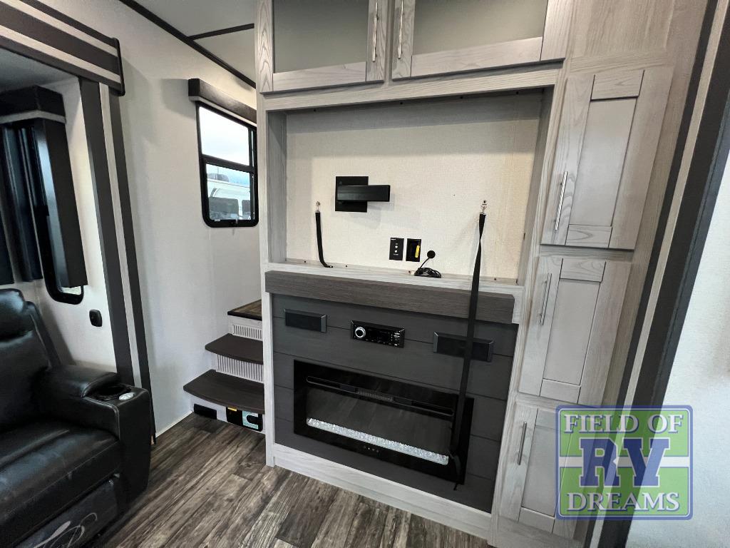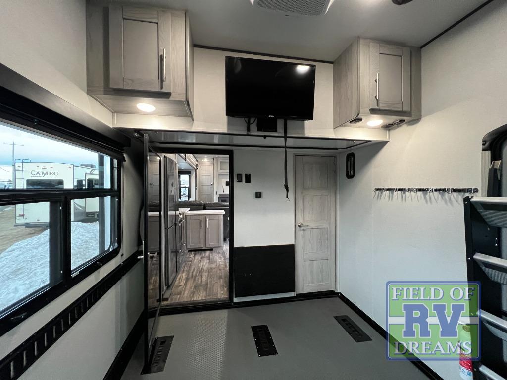 Pack your bags and load up the toys into this toy hauler with the 8' MORryde zero gravity ramp door! The Adjust-A-Track system ensures they will safely arrive and the dual 30 gallon fuel tanks will keep them fueled and ready to go. Keep everyone's bellies full with the three burner cooktop and if you chose to switch out the sofa slide for the optional dinette with chairs slide then you can enjoy your meals there or in the 13' 6" garage area with the dual opposing sofas. A queen bed is above the sofas and inside the garage area there is also a loft with bunk mat, an LED TV, a half bathroom, and one of the dual entry doors to the unit. You can wind down your nights by relaxing on the L-shaped sofa by the entertainment center with an LED TV and fireplace or take a relaxing shower in the dual entry bathroom which leads directly into the front private bedroom. You can even have clean clothes throughout your trip if you add the optional washer and dryer to the prepped area in the front master closet!